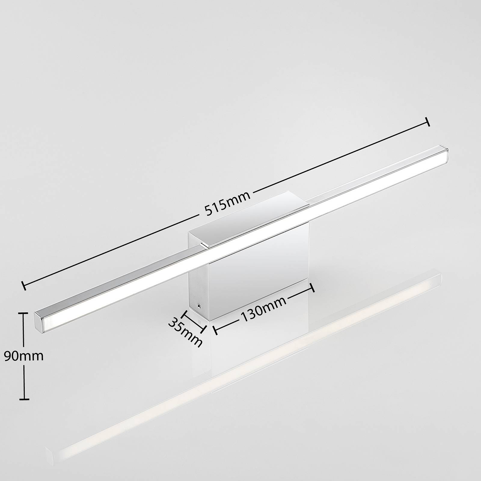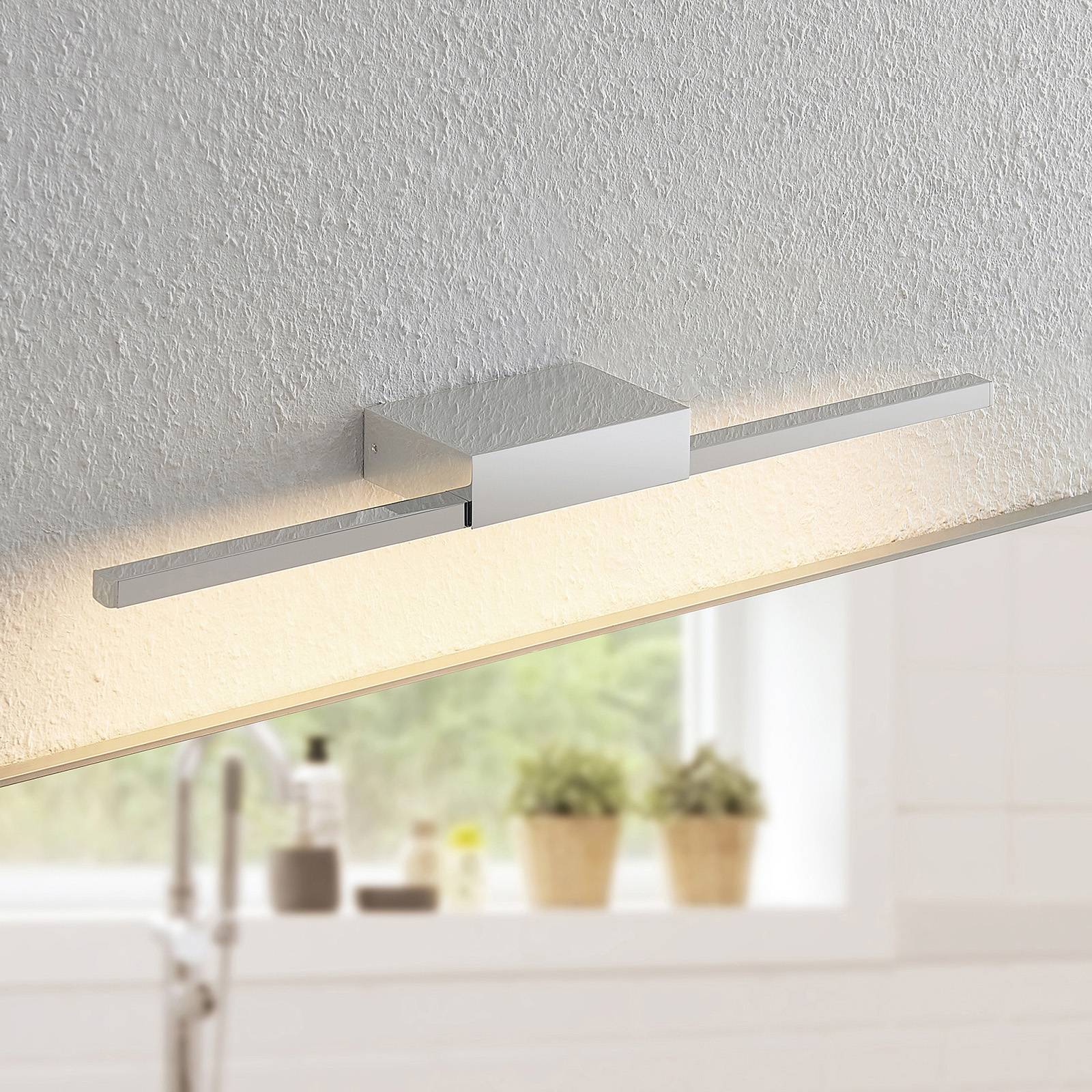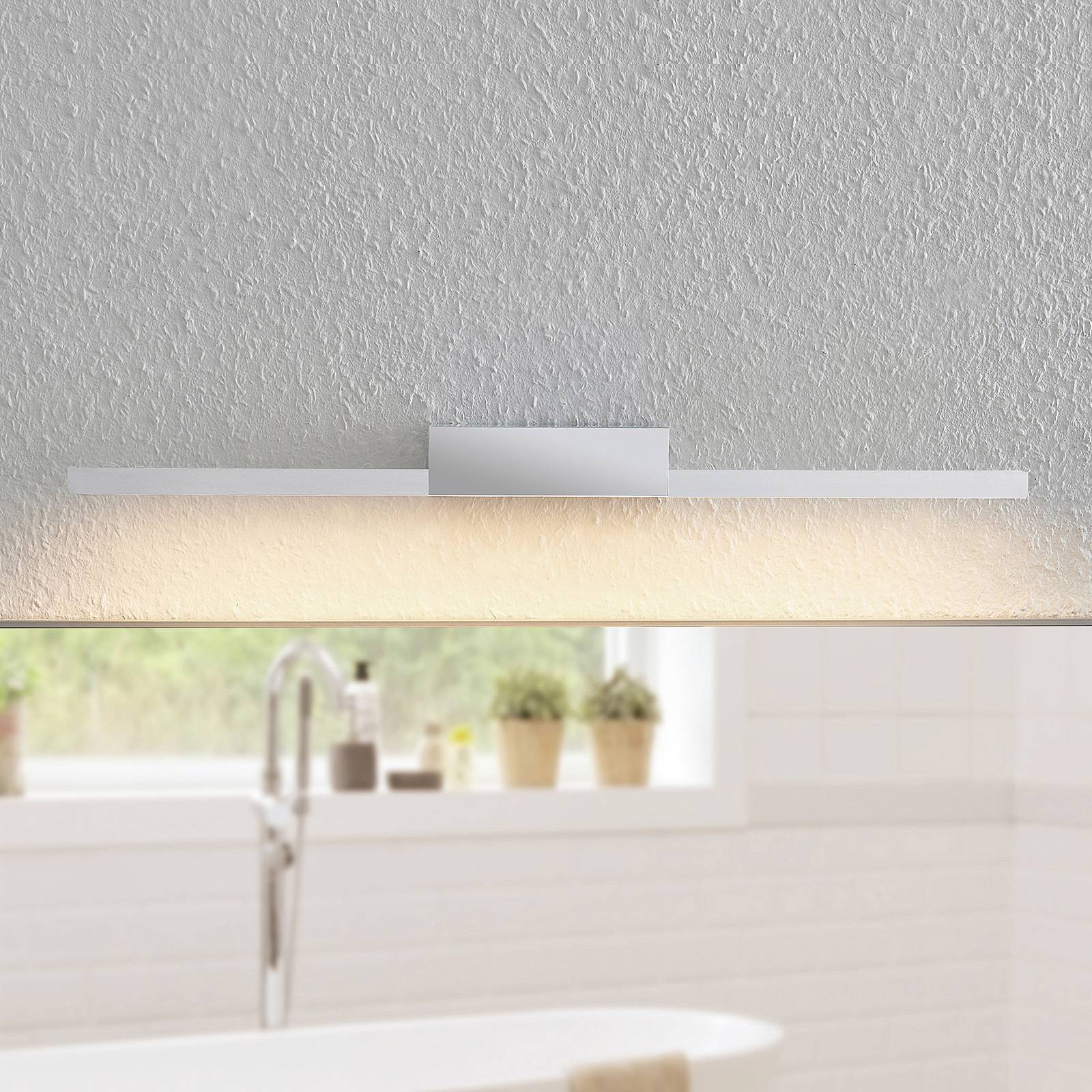 Zrcadlové osvětlení v lesklém chromu: nástěnné svítidlo Metin LED, IP44 Metin má relativně úzký design a vysoce lesklou povrchovou úpravu v chromu a obě jsou vlastnosti, díky nimž je nástěnné světlo s LED ideální pro použití v moderních místnostech. Metin je obzvláště vhodný pro použití jako zrcadlové světlo v koupelnách, protože třída ochrany označuje ochranu proti stříkající vodě a chromový design je v koupelnách obzvláště oblíbený, protože armatury tam mají obvykle takový povrch. LED diody za saténovým akrylovým krytem vyzařují své světlo rovnoměrně a jsou světelnými zdroji s vysokou účinností.