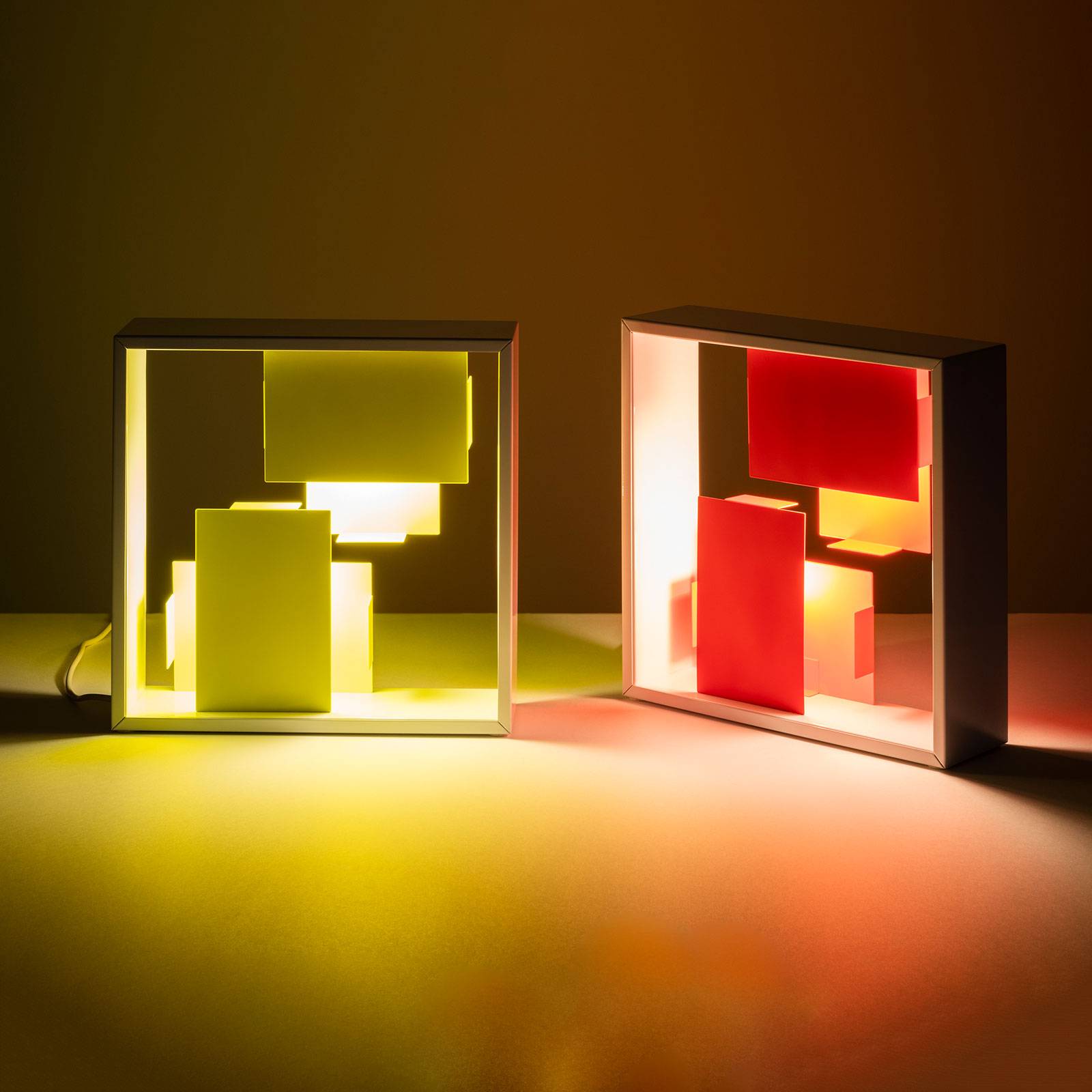 Fato Bicolor – čtvercové nástěnné svítidlo v dvoubarevném provedení, lze také použít jako stolní lampu (ukázkové zboží) Fato Bicolor je kreativním svítidlem z tvorby Artemide, jehož design pochází z díly Michele De Lucchi, Giancarlo Fassina a Gio Ponti. Svítidlo lze připevnit na zeď, ale lze jej použít také jako stolní lampu, protože je vybaveno kabelem se zástrčkou. V bílém kovovém rámu jsou geometrické prvky ve výrazné kontrastní barvě, které částečně stíní světlo. Uspořádání prvků vytváří velmi speciální světelné efekty se zajímavou a vzrušující hrou světla a stínu, takže lampa není jen světelným zdrojem, ale představuje také osvětlovací skulpturu a zajímavý dekorativní předmět. Stylisticky svítidlo evokuje asociace se šedesátými léty. Základna lampy vyrobené v Itálii společností Artemide se skládá ze smaltovaného, skládaného a svařovaného plechu v zářivě bílé barvě a geometricky tvarované prvky v rámu s výrazným lakováním, jsou vyrobeny z plechu. Společnost Artemide, založená v roce 1960 Ernestem Gismondim, se sídlem v italské Pregnana Milanese, se vyznačuje prvotřídními světelnými kreacemi, které představují kombinaci nejnovějších technologií, starodávné moudrosti a udržitelné výroby.
