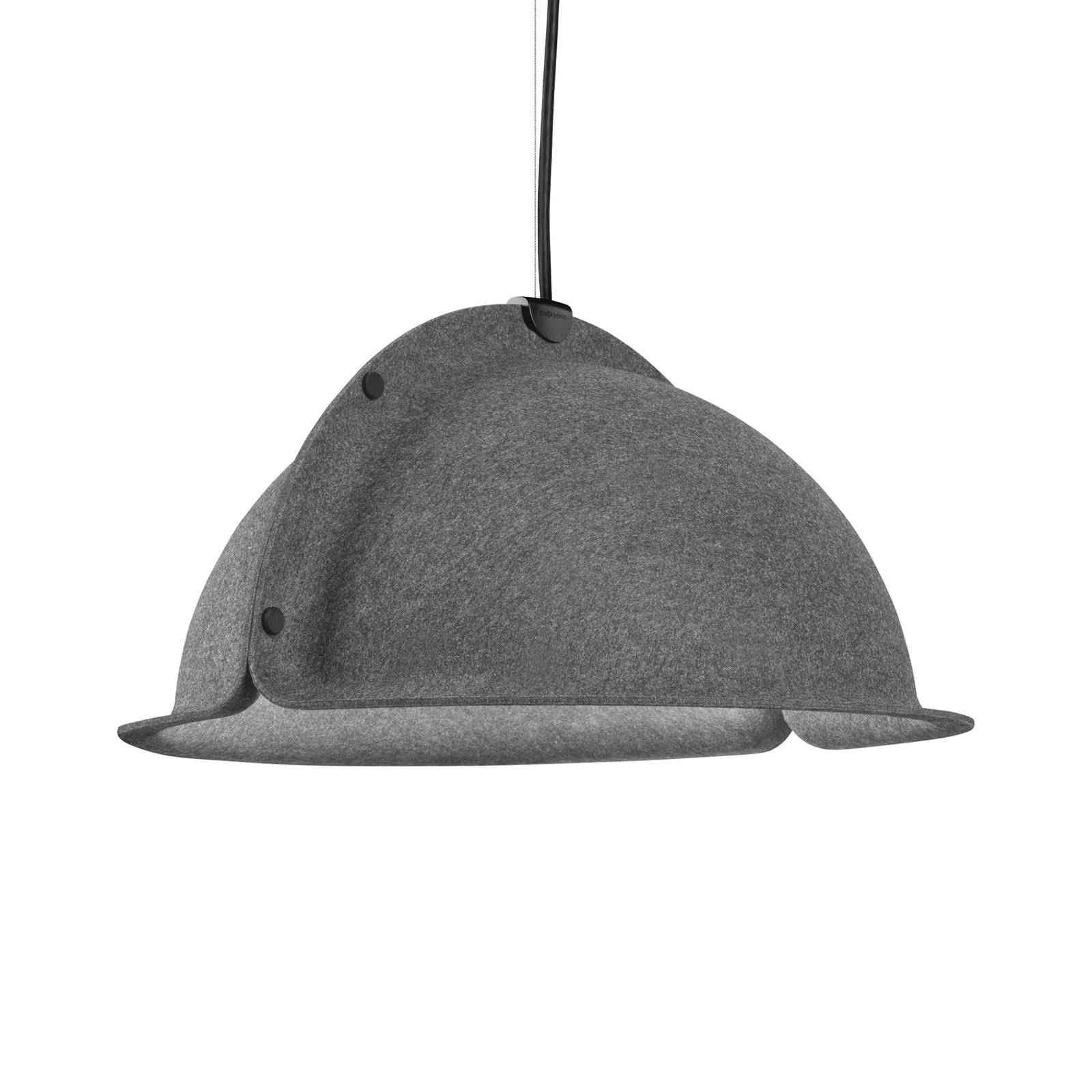 Hood Mini zvukově pohlcující závěsné svítidlo s jednou jednotkou LED Sametově jemný je nejen vzhled tohoto závěsného svítidla LED, ale také akustika v jeho okolí. Potah z polyesterové plsti pohlcuje rušivé zvuky, takže se tlumí rušivé zvuky a vytváří se příjemná atmosféra pro konverzaci. Konstrukce ve tvaru polokoule otevřené ve spodní části se skládá ze čtyř modulů; uprostřed se nachází jednotka LED s opálovým akrylovým difuzorem. To poskytuje široké, rovnoměrně rozptýlené světlo směrem dolů – ideální pro osvětlení stolů a ploch. – externě stmívatelné DALI