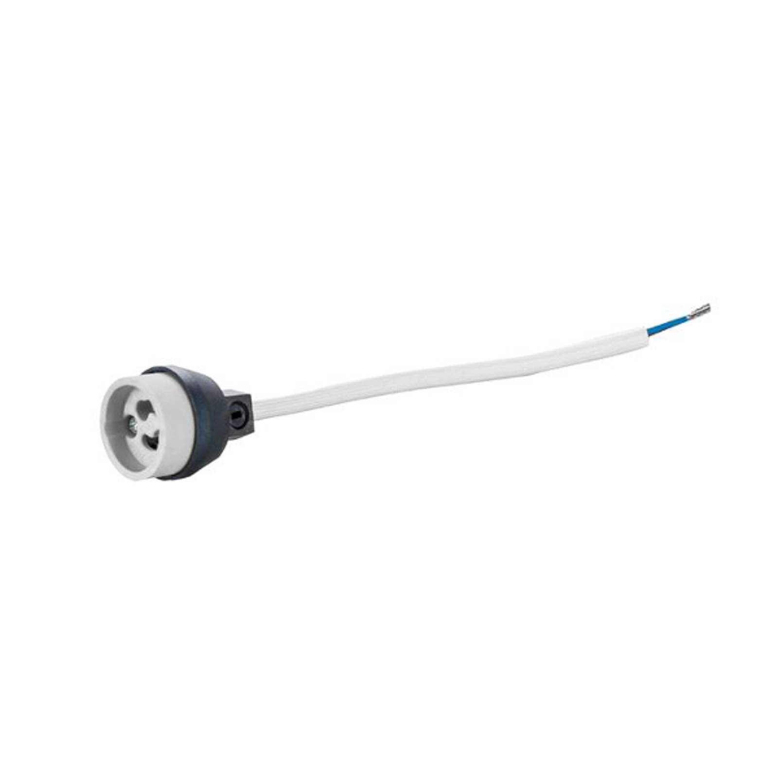 Vysokonapěťová zásuvka GU10 s přívodním kabelem, polovina svítidla – odlehčení tahu a průvanu na místě – délka přívodního kabelu 13 cm – napětí: 230V AC 50Hz
