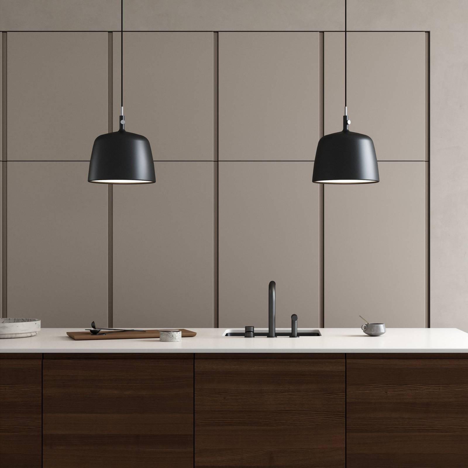 Černá závěsná lampa Norbi s pohyblivým stínidlemMinimalistický design závěsné lampy Norbi zaručuje, že se hodí do různých obytných prostředí. Norbi se hodí například jako zdroj světla do kuchyně i jídelny nebo obývacího pokoje. Decentní barevné provedení v černé a bílé barvě doplňuje nenápadný prvek z broušené oceli, který dodává lampě moderní nádech. Stínítko lze také posouvat nahoru a dolů. Pokud se stínidlo posune nahoru, je celá místnost osvětlena rozptýleným světlem. Pokud stínítko posunete směrem dolů, světlo se soustředí dolů – což je praktické zejména pro pracovní plochu v kuchyni. Pomocí externího fázového stmívače a odpovídajícího světelného zdroje je také možné měnit jas závěsného svítidla.- Design: Bjørn Balle