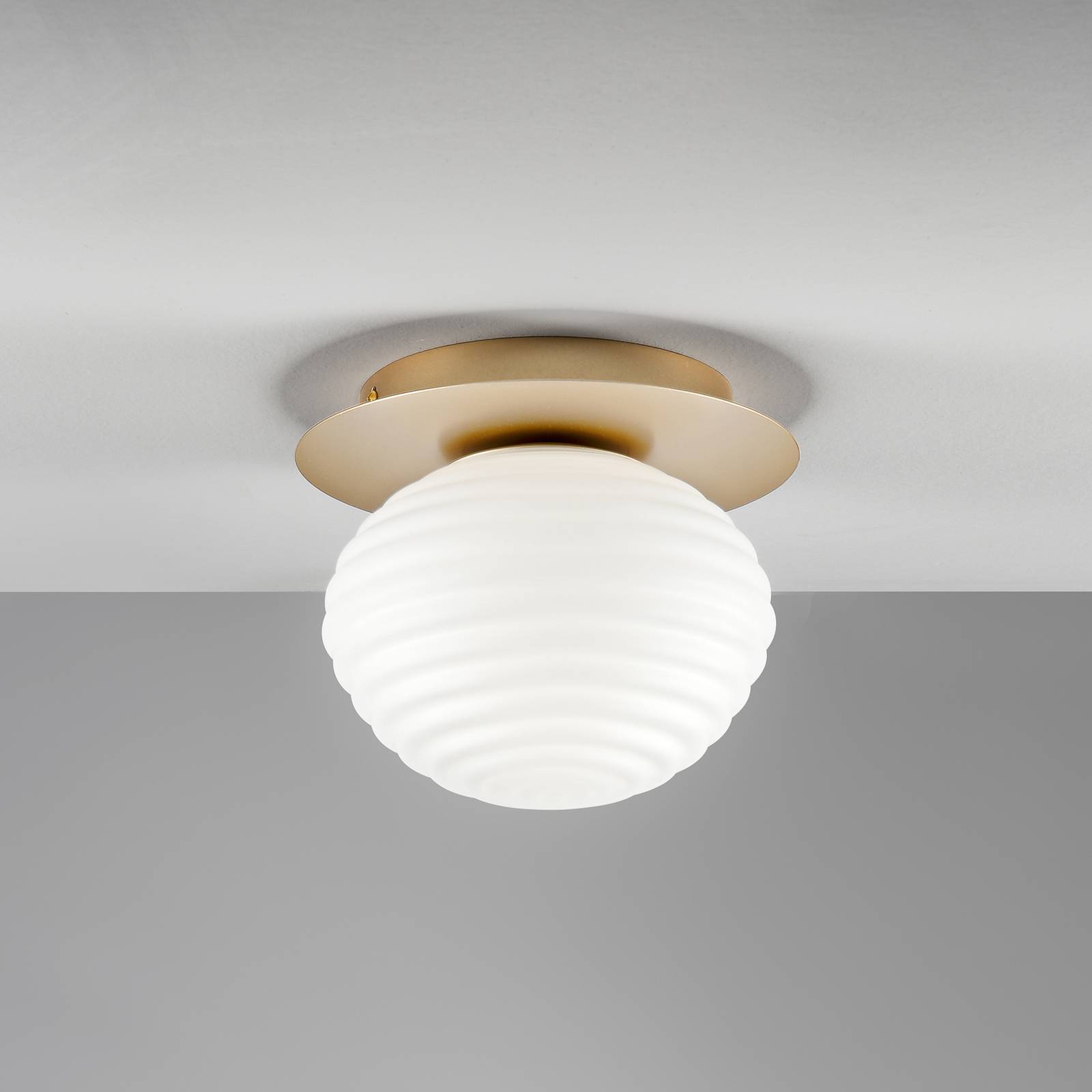 Eco-Light Stropní svítidlo Ripple, zlatá/opálová, Ø 20 cm, Obývací pokoj / jídelna, Sklo, kov, E27, 40W, K: 28cm
