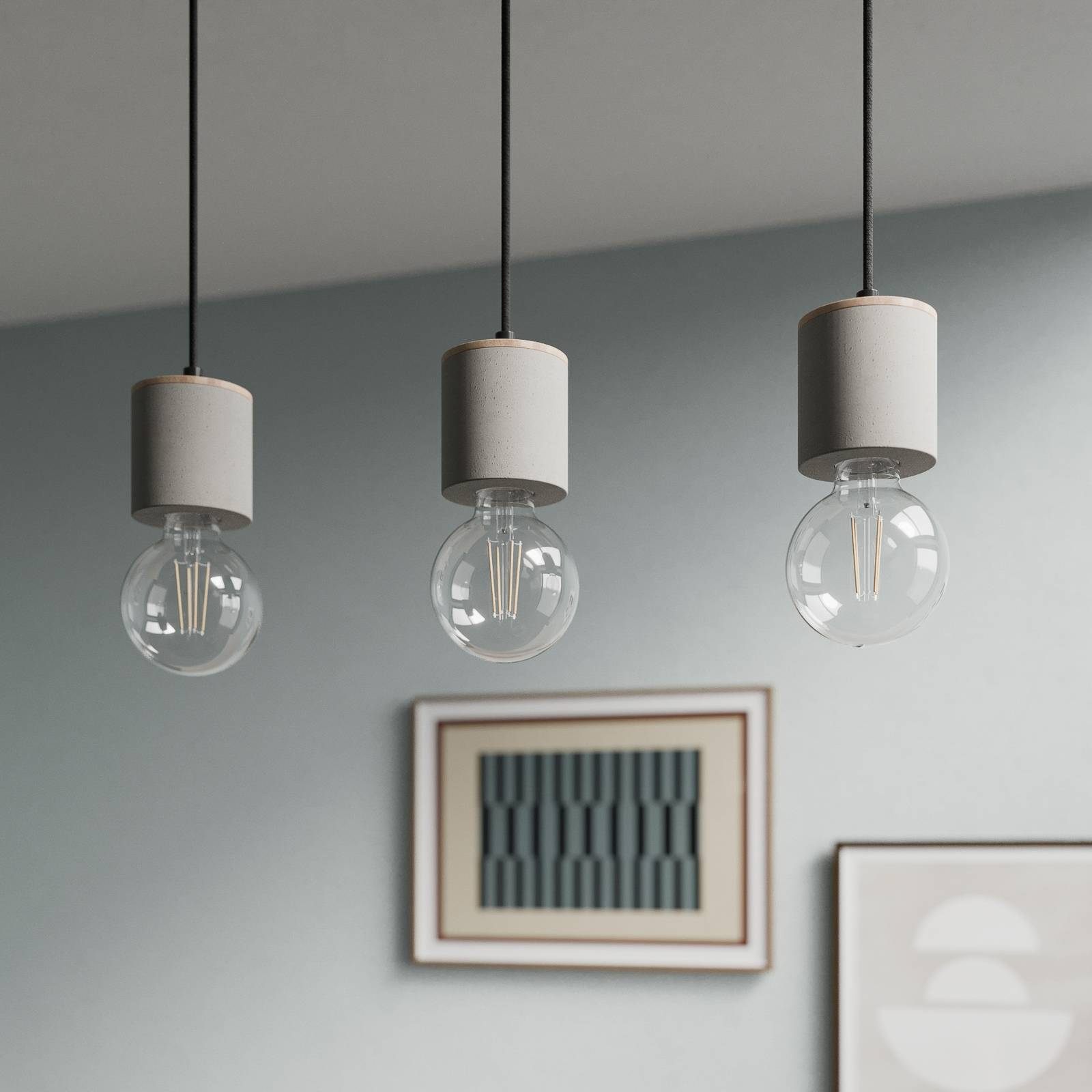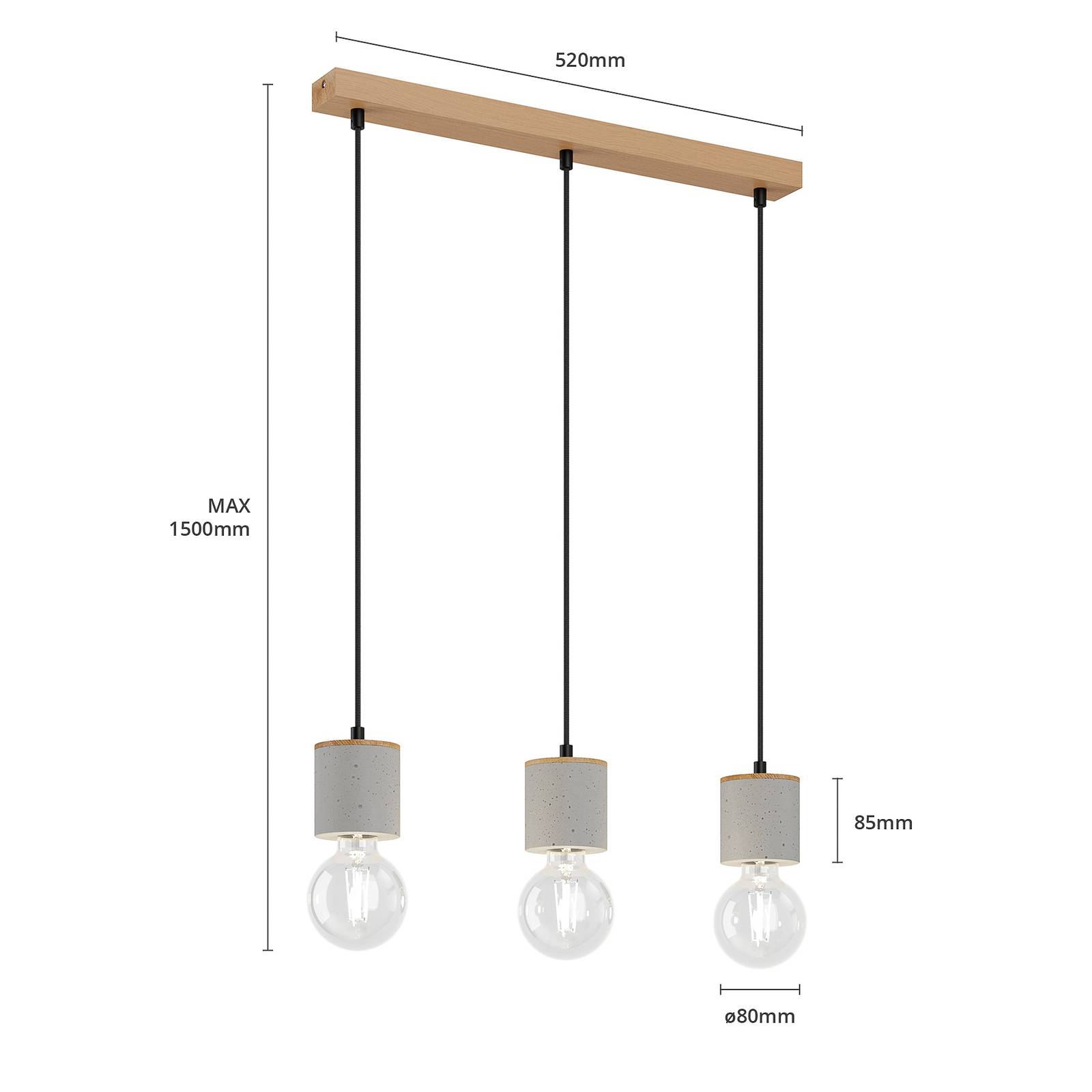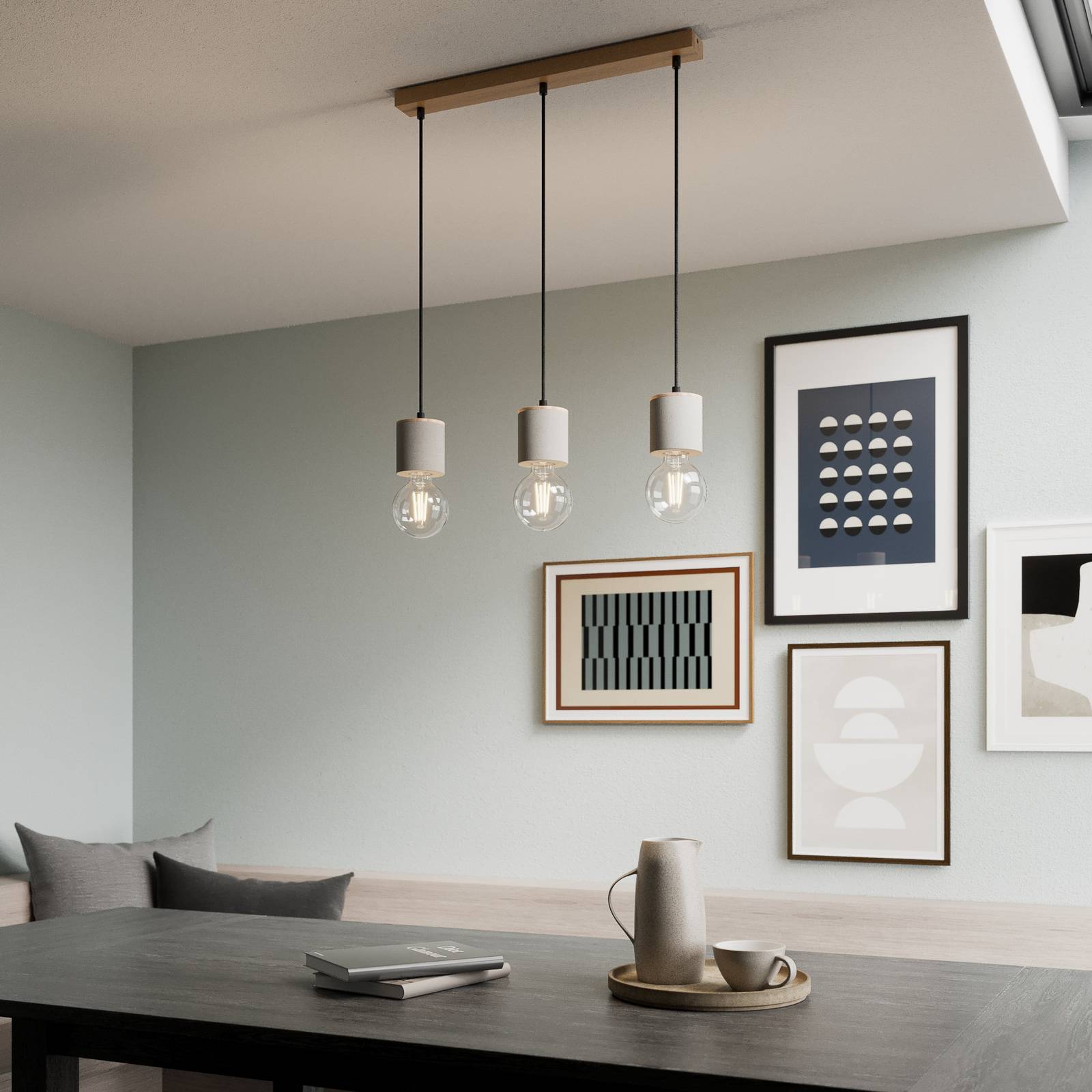 Závěsné svítidlo Jasper se třemi lampami z dubového dřeva a betonu s rovnou stříškou Závěsné svítidlo Jasper se třemi lampami je vyrobeno z dubového dřeva a betonu. Z rovné stříšky visí dolů tři válce s integrovanými objímkami pro svítidla, které jsou spleteny z černých textilních kabelů. Kombinace materiálů je neobvyklá, působí přirozeně a moderně zároveň a přispívá k dekorativnímu efektu. Jasper se skvěle hodí k osvětlení obývacího pokoje nebo jídelního stolu. Osvětlovací tělesa nejsou součástí dodávky, a proto si je lze vybrat podle vlastních preferencí a odpovídající zásuvky. Tímto způsobem lze ideálně přizpůsobit světelné podmínky požadovaným představám a požadavkům na umístění. Dekorativní svítidla jsou vhodná zejména pro osvětlení. Zdroje světla směřují dolů a vyzařují světlo do všech směrů. Dubové dřevo použité na výrobu svítidla má certifikát FSC a pochází z lesů obhospodařovaných udržitelným způsobem. Svítidla značky Envostar se vyrábějí v Evropě, a proto zaručují krátké přepravní vzdálenosti a zároveň nízké emise CO2. Jasper je dodáván v obalech, které se skládají z recyklovatelných materiálů.