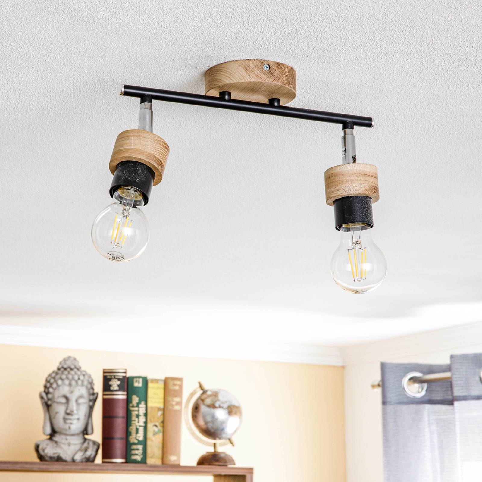 Stropní svítidlo Merlo s dvěma světly v otevřeném designu – světlé dubové dřevo a černý kov Moderní design a přirozené charisma nemusí být v rozporu – důkazem je Merlo. Stříška a obě hlavy stropního svítidla jsou vyrobeny ze světlého, olejovaného dubového dřeva. Kromě toho jsou pláště zásuvek a vodorovné rameno vyrobeny z kovu, který vytváří módní kontrast s jejich černým provedením. Hlavy svítidel mohou být všude zarovnány a mohou být vybaveny například dekorativními žárovkami. – Svítidlo značky Envostar – Vyrobeno v Evropě – udržitelné obaly z recyklovatelných materiálů