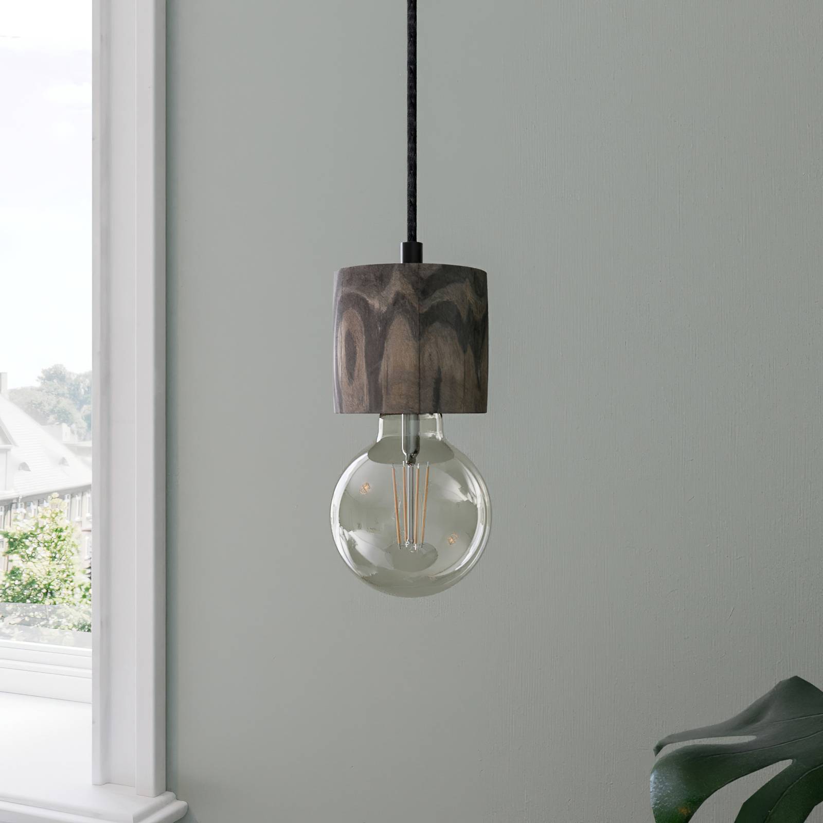 Jednosvíticí závěsné svítidlo Terra z mořeného borovicového dřeva ve vzhledu ořechu Závěsné svítidlo Terra se skládá z černého kovového vrchlíku, od kterého vede textilní kabel k objímce z tmavého borovicového dřeva. Lampa je velmi jednoduchá a díky borovicovému dřevu vnáší do příslušného obytného prostoru krásný přírodní nádech. Je ideální jako zdroj světla nad obývacím nebo jídelním stolem, ale lze jej použít i v předsíni a sloužit jako dekorativní prvek. Svítidlo nemá stínítko ve vlastním slova smyslu, takže výhled na světelný zdroj není omezen. Proto jsou pro osvětlení závěsného svítidla vhodné zejména dekorativní světelné zdroje. Kromě toho lze libovolně zvolit zdroj světla. Tímto způsobem lze světelné podmínky individuálně přizpůsobit představám a podmínkám daného místa. Světlo je vyzařováno do všech směrů. Značka Envostar klade při výrobě svých svítidel velký důraz na udržitelnost. Použité borové dřevo pochází z ekologicky obhospodařovaných oblastí a má certifikát FSC. Výroba v Evropě vede ke zkrácení přepravních tras, což má pozitivní vliv na emise CO2. Terra je dodávána v obalech z recyklovatelných materiálů.
