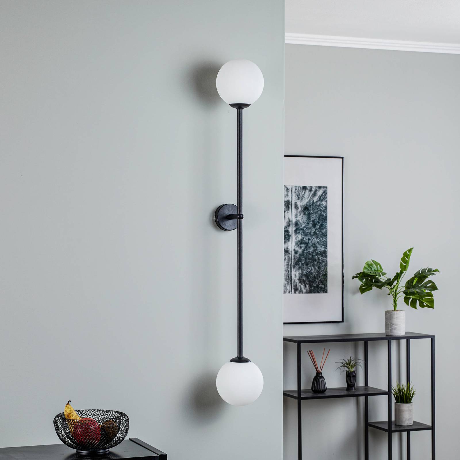 Euluna Nástěnné světlo Alison, 2 zdroje, černá/bílá 100cm, Obývací pokoj / jídelna, kov, sklo matované, E14, 40W, L: 14 cm, K: 100cm
