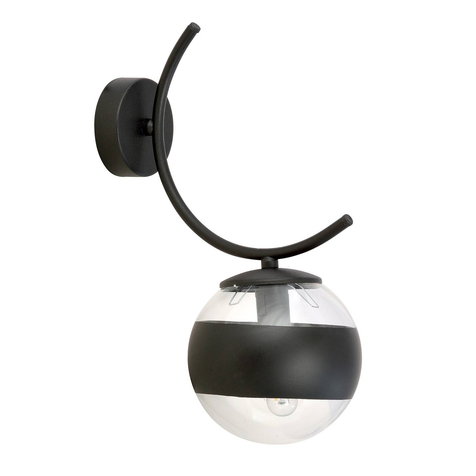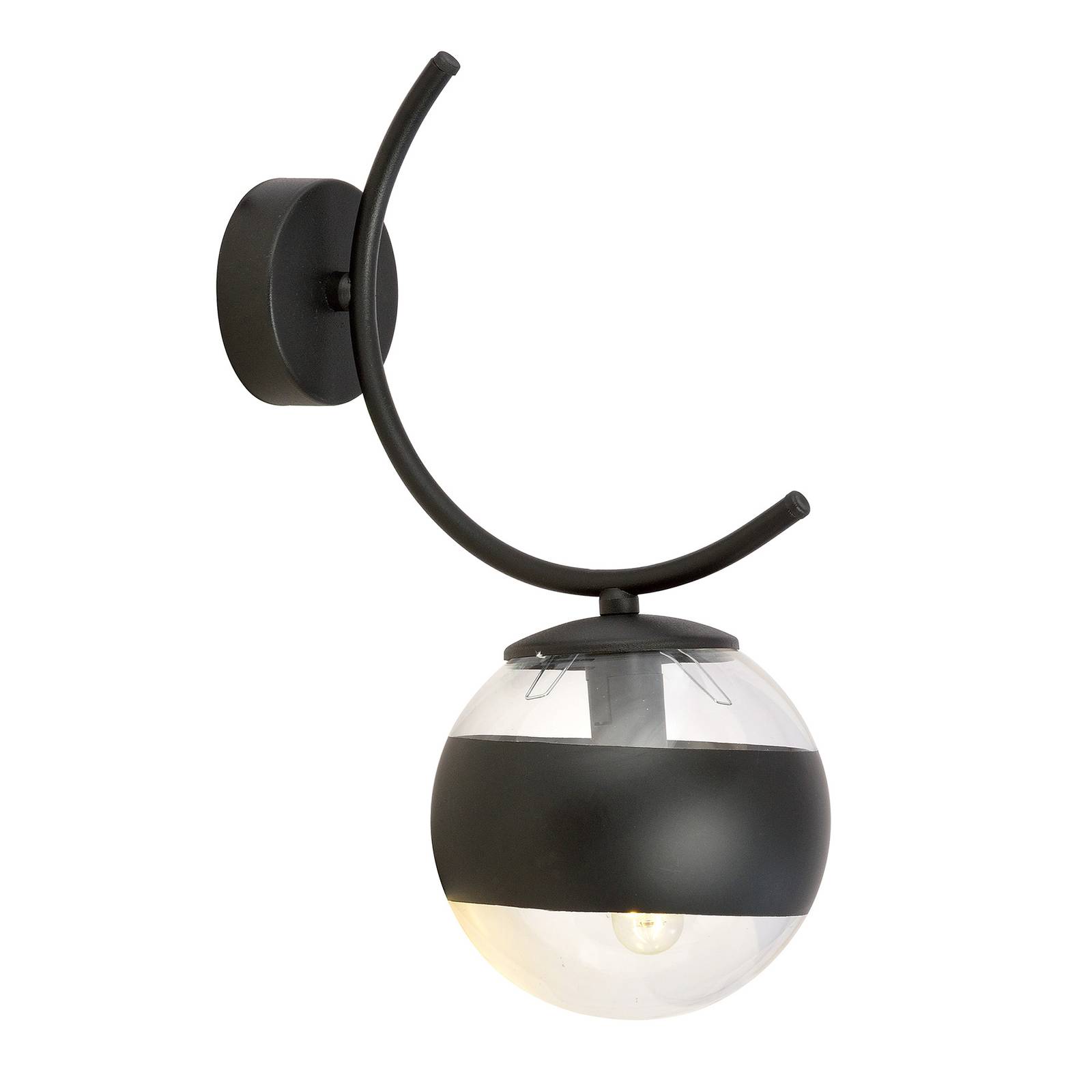 Euluna Nástěnné světlo Boston, černá/čirá, 1 zdroj, Obývací pokoj / jídelna, kov, sklo, E14, 40W, K: 33cm
