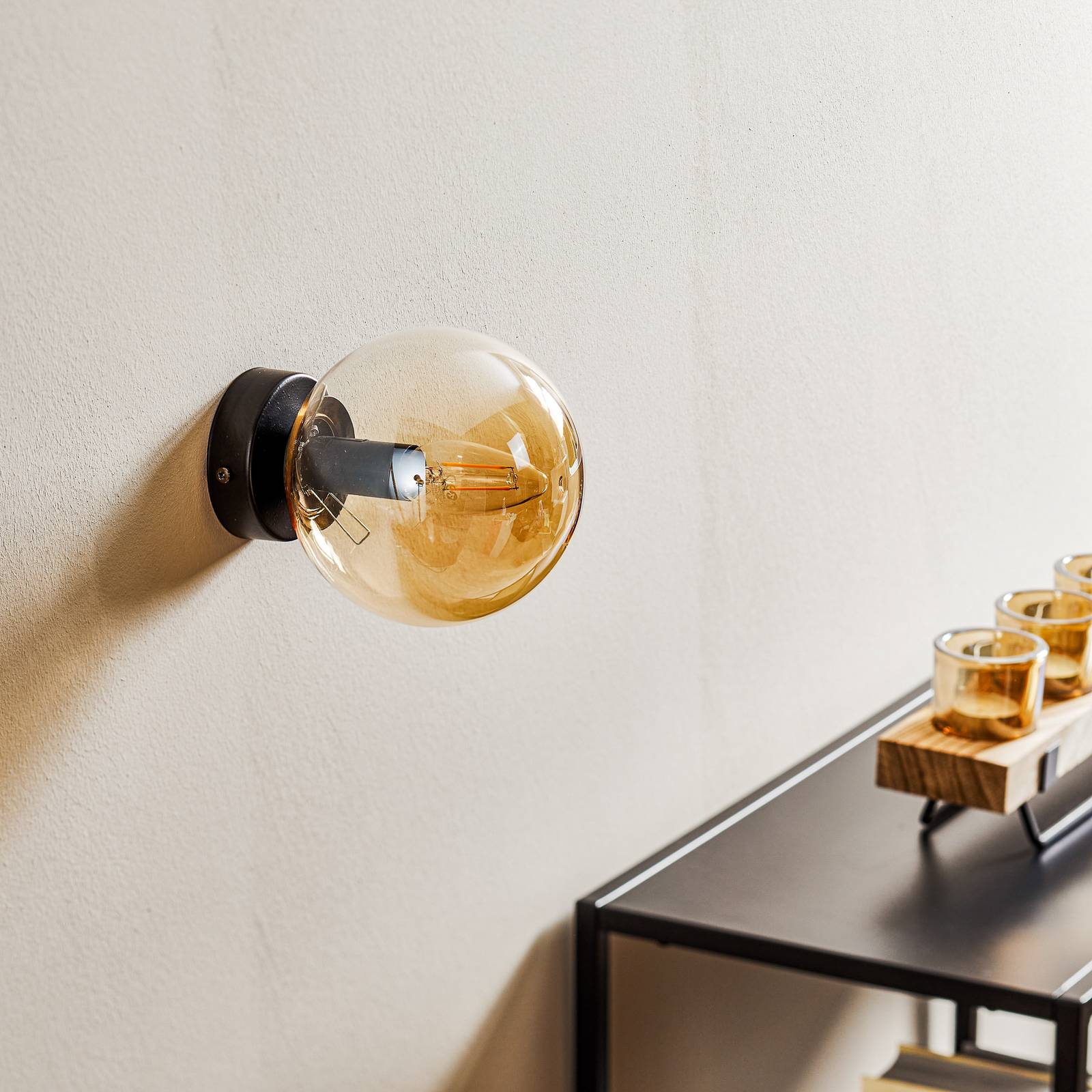 Euluna Nástěnné světlo Glassy 1 zdroj černá, sklo jantar, Obývací pokoj / jídelna, ocel práškovaná, sklo, E14, 40W