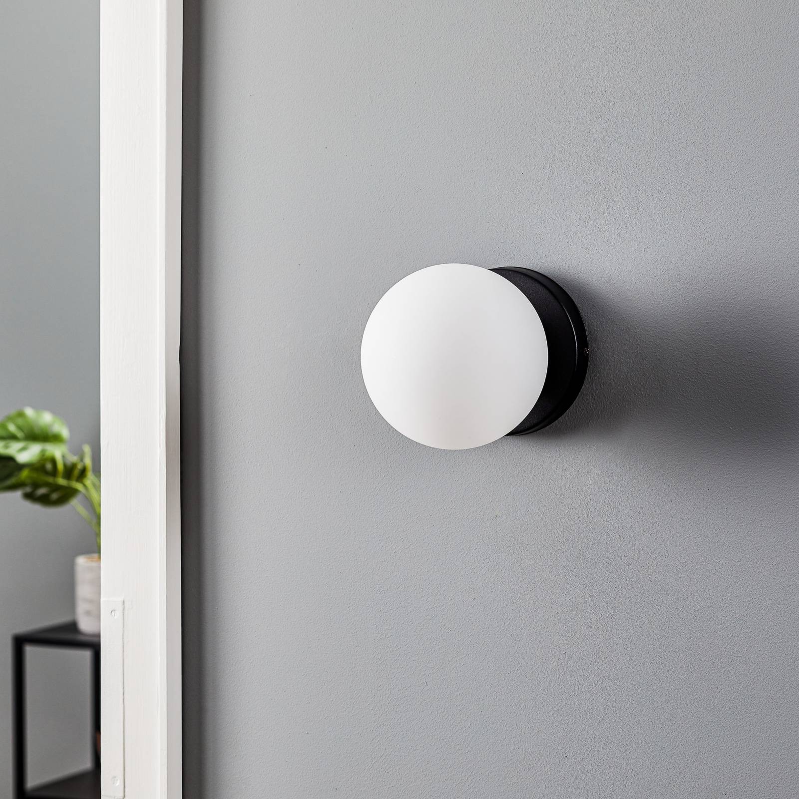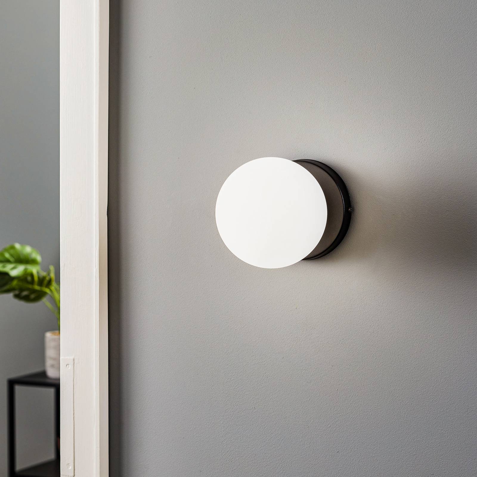 Euluna Nástěnné světlo Kiba, černá/zlatá skleněná koule, Obývací pokoj / jídelna, ocel práškovaná, sklo, E14, 40W