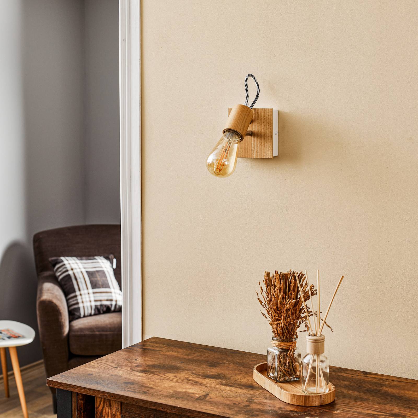 Euluna Nástěnné světlo Loki, 1 patice, dřevo světlé/bílá, Obývací pokoj / jídelna, dřevo, ocel, E27, 60W, L: 13 cm, K: 11cm