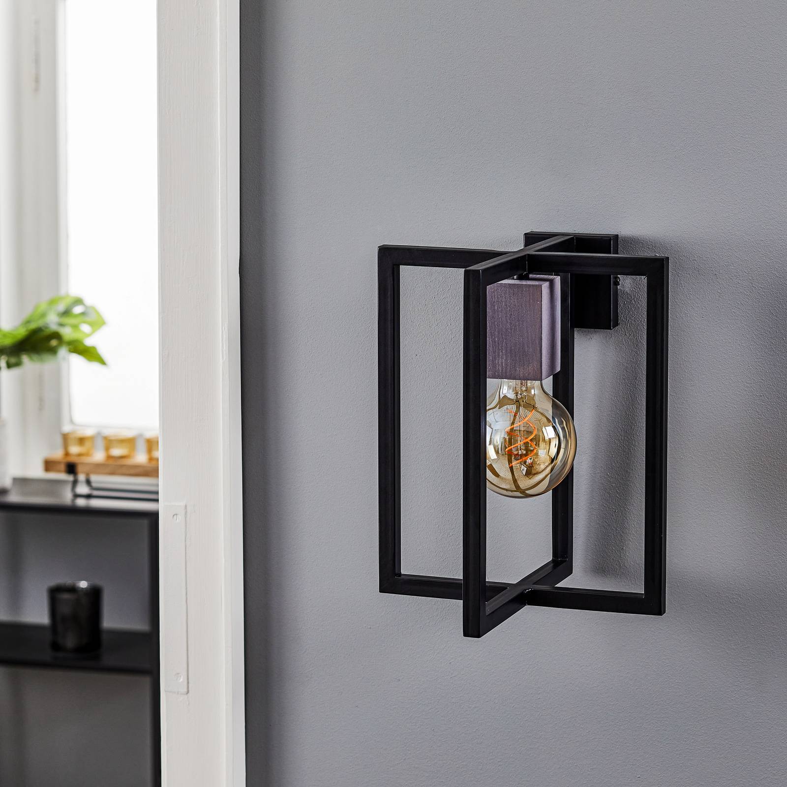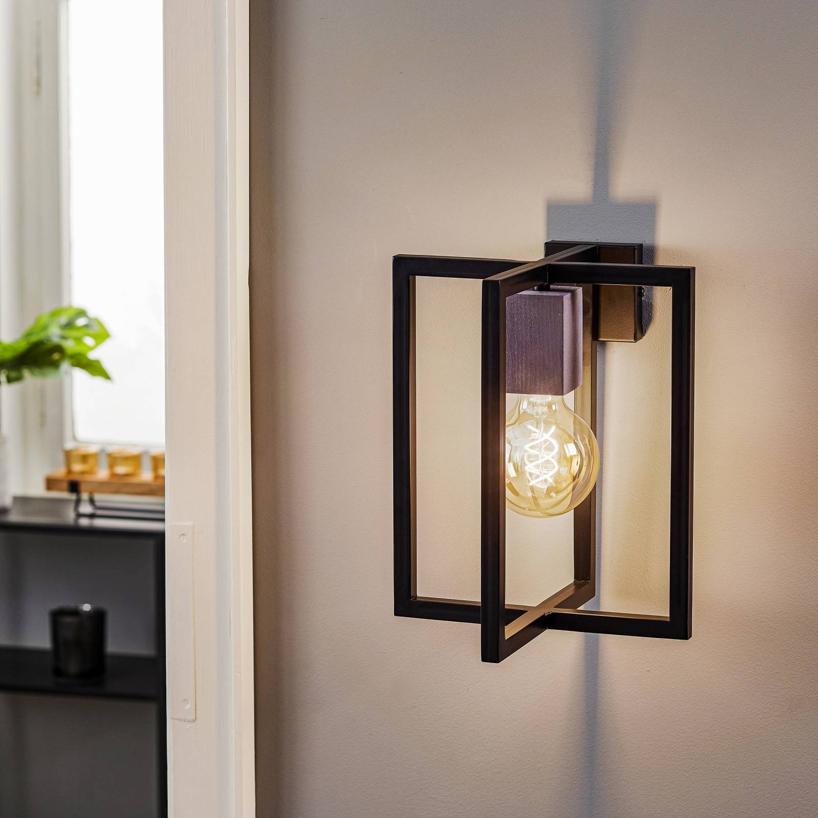 Euluna nástěnné světlo Ralph v obdélníkovém provedení, Obývací pokoj / jídelna, ocel, dřevo, E27, 60W, L: 25 cm, K: 35cm