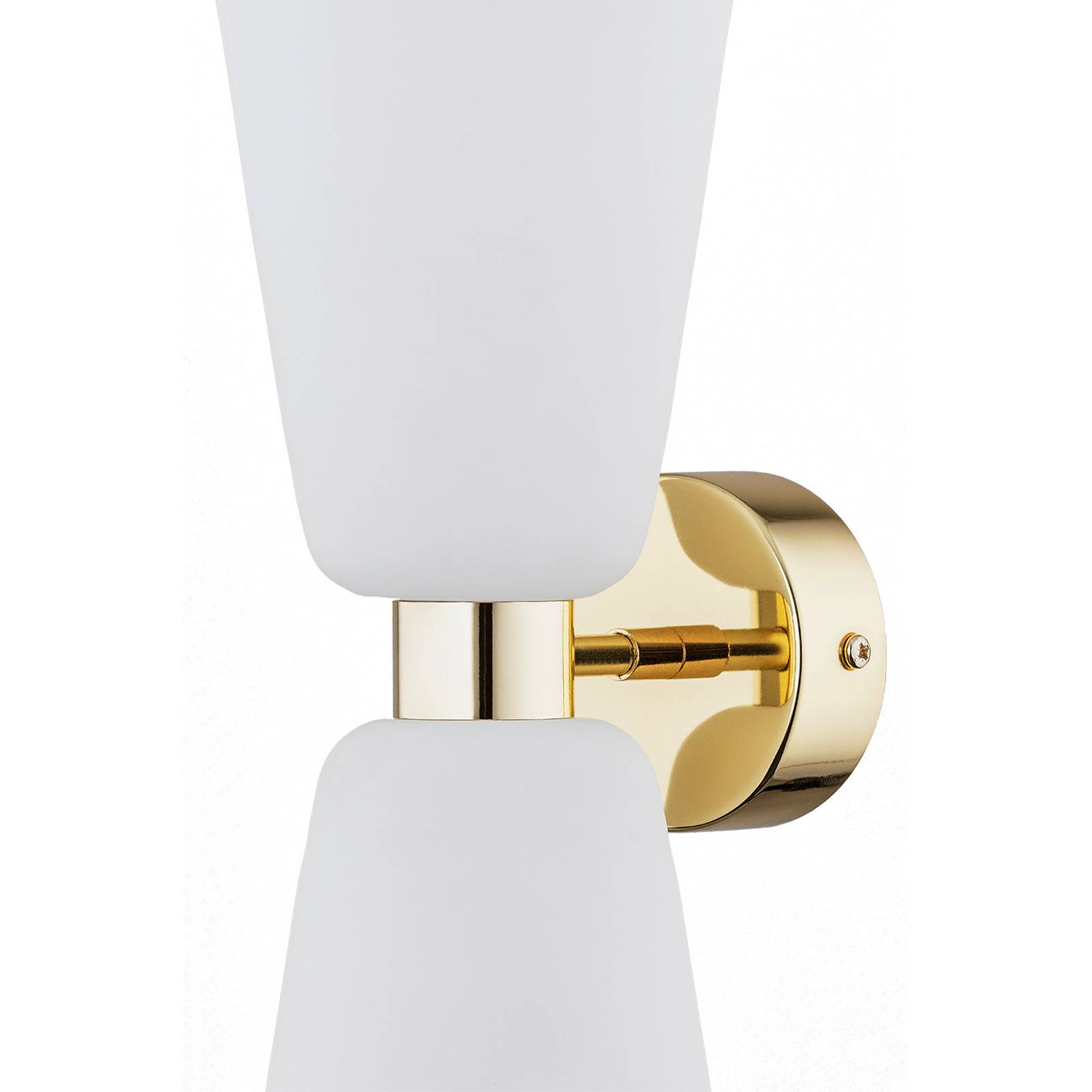 Euluna Nástěnné světlo Rita 2 zdroje up/down opál/mosaz, Obývací pokoj / jídelna, sklo, ocel, E14, 7W, L: 13.5 cm, K: 34cm