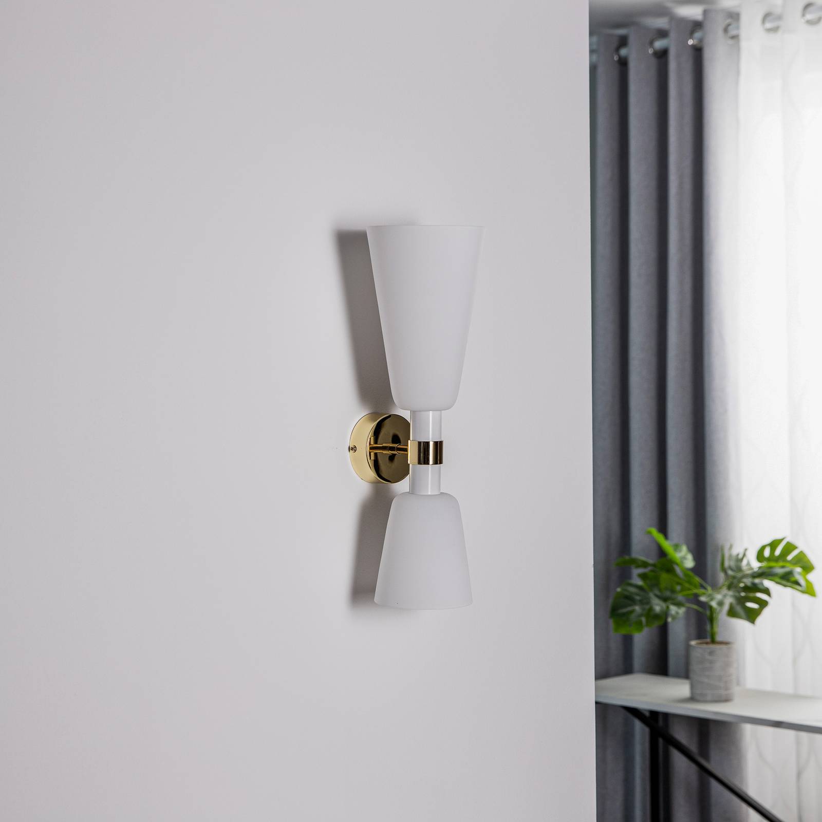 Produkt Euluna Nástěnné světlo Rita 2 zdroje up/down opál/mosaz, Obývací pokoj / jídelna, sklo, ocel, E14, 7W, L: 13.5 cm, K: 34cm od známého výrobce Euluna nyní pořídíte pouze za 3099.00 CZK a to navíc s dopravou zdarma.