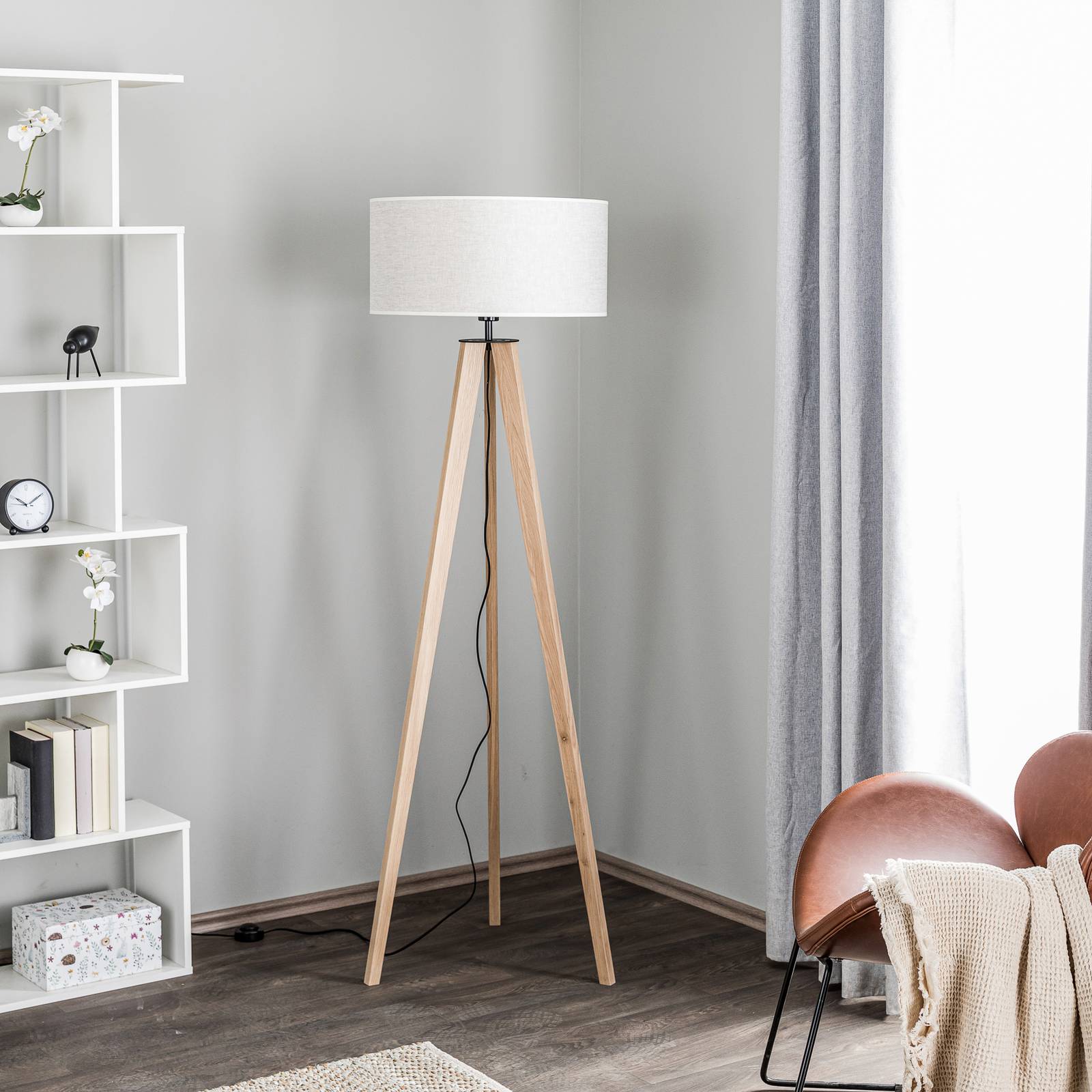 Produkt Euluna Stojací lampa Maira, třínožka olejovaný dub béžová, Obývací pokoj / jídelna, dřevo, kov, textil, E27, 60W, K: 160cm od známého výrobce Euluna nyní pořídíte pouze za 8599.00 CZK a to navíc s dopravou zdarma.