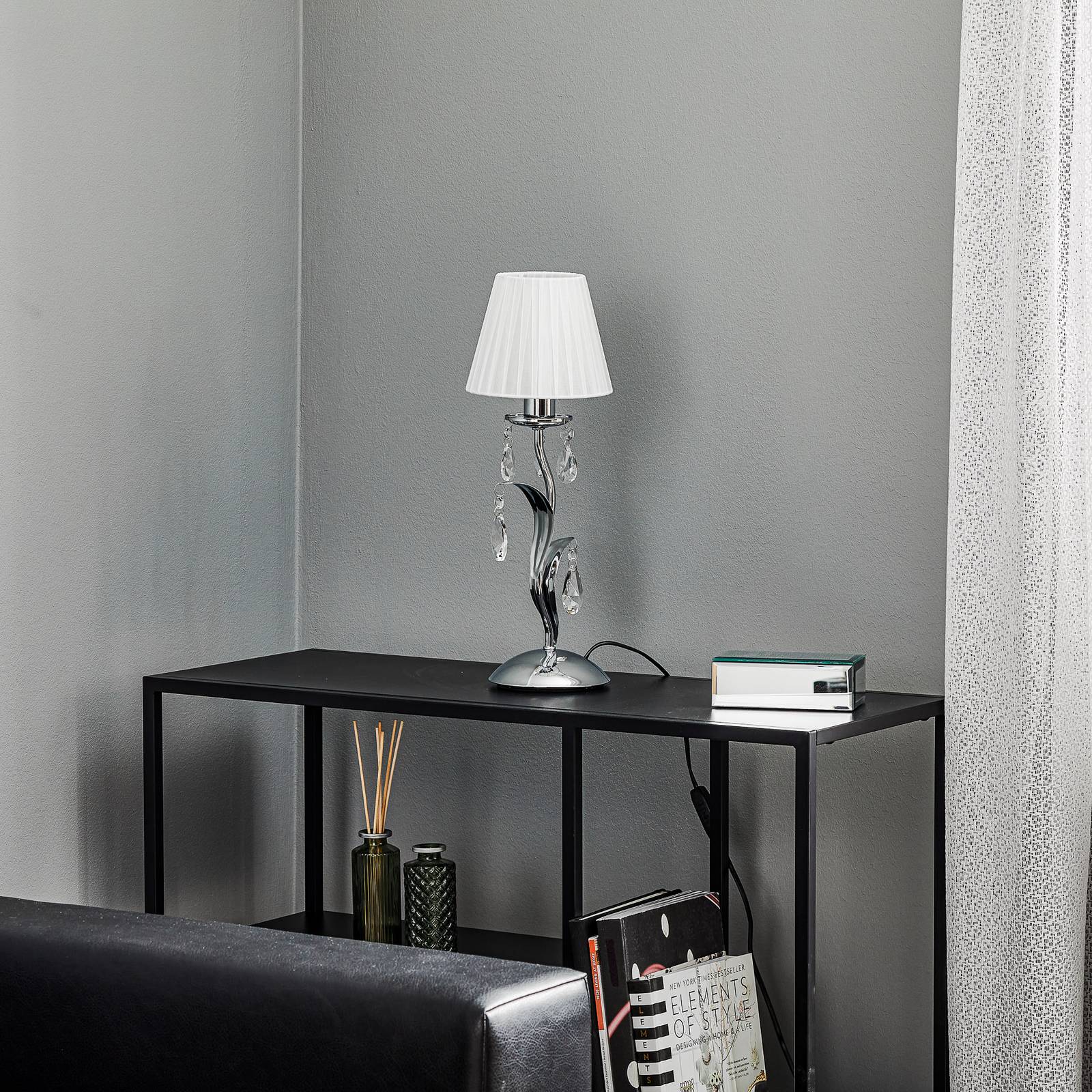 Produkt Euluna Stolní lampa Jacqueline, 1 zdroj, bílá, Obývací pokoj / jídelna, železo, tkaniny, křišťálové sklo K9, E14, 6W, K: 45cm od známého výrobce Euluna nyní pořídíte pouze za 2199.00 CZK a to navíc s dopravou zdarma.