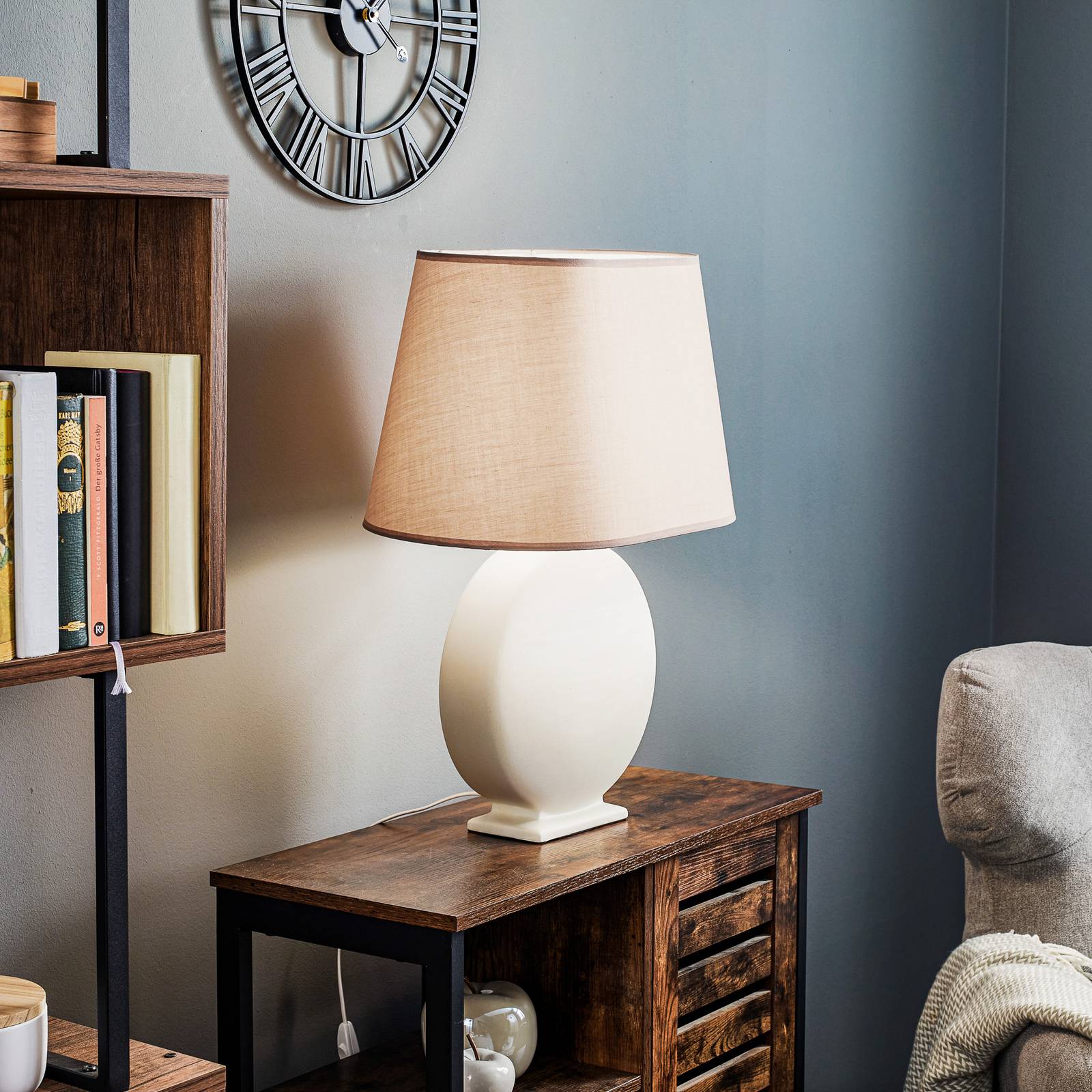 Euluna Stolní lampa Zen, béžové stínidlo, keramika, 60cm, Obývací pokoj / jídelna, textil, keramika, E27, 22W, P: 45 cm, L: 20 cm, K: 60cm