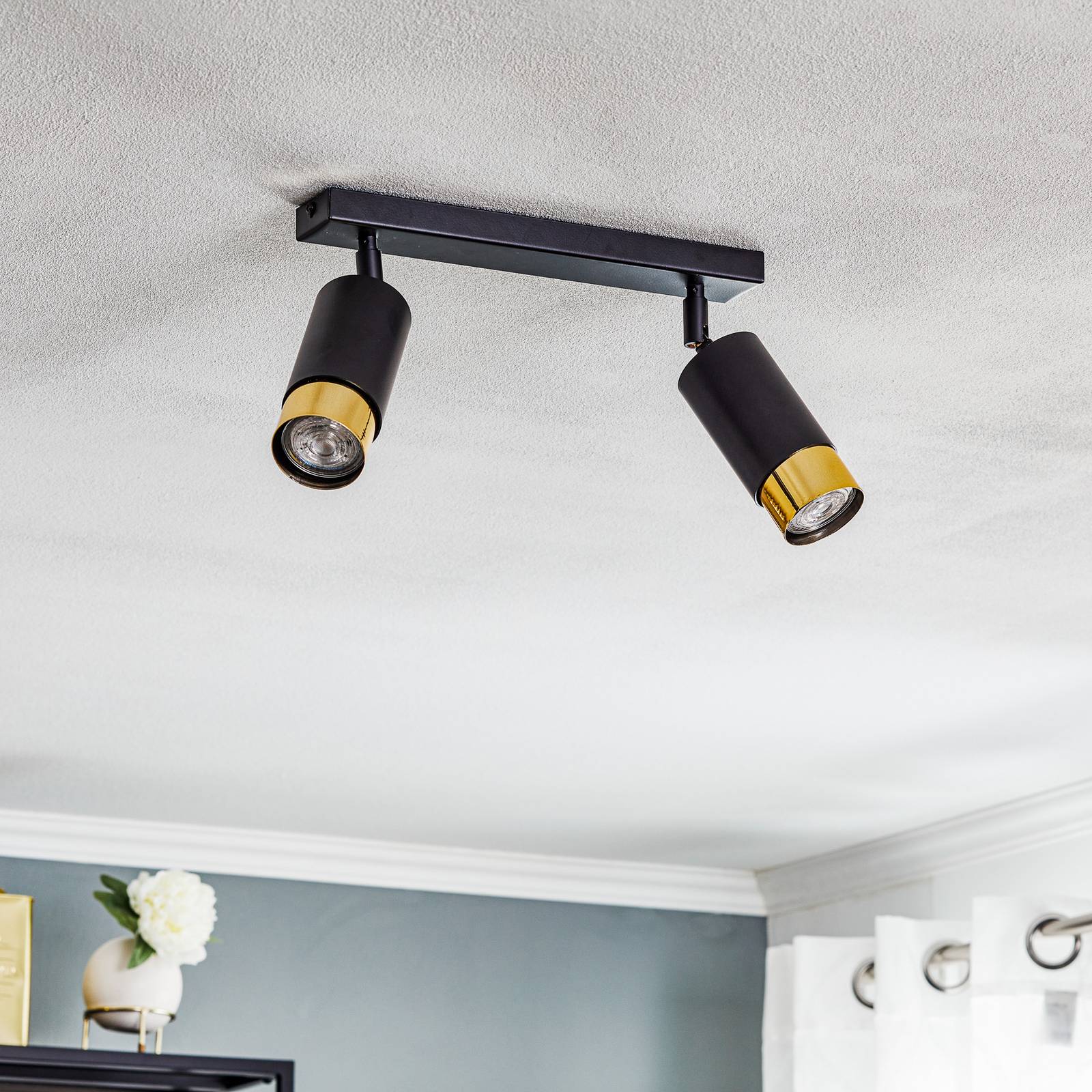 Euluna Stropní bodové osvětlení Kumo černá/zlatá 2 zdroje, Obývací pokoj / jídelna, ocel s práškovým lakem, GU10, 30W, P: 45 cm, L: 8 cm, K: 18cm