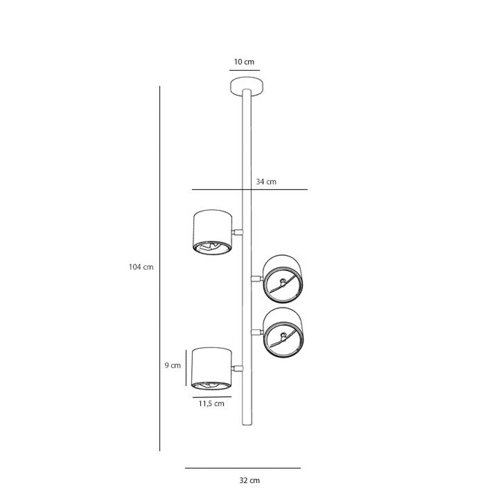 Produkt Euluna Stropní bodové světlo 1047PL_L2, 4 zdrojů, černá, Obývací pokoj / jídelna, kov, GU10, 35W, P: 34 cm, L: 34 cm, K: 104cm od známého výrobce Euluna nyní pořídíte pouze za 5199.00 CZK a to navíc s dopravou zdarma.