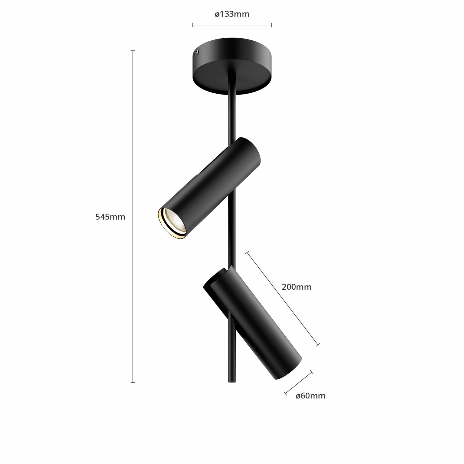 Euluna Stropní spot Leda 2, dva zdroje, černý, Obývací pokoj / jídelna, ocel s práškovým lakem, GU10, 25W, P: 28 cm, L: 13.5 cm, K: 55cm