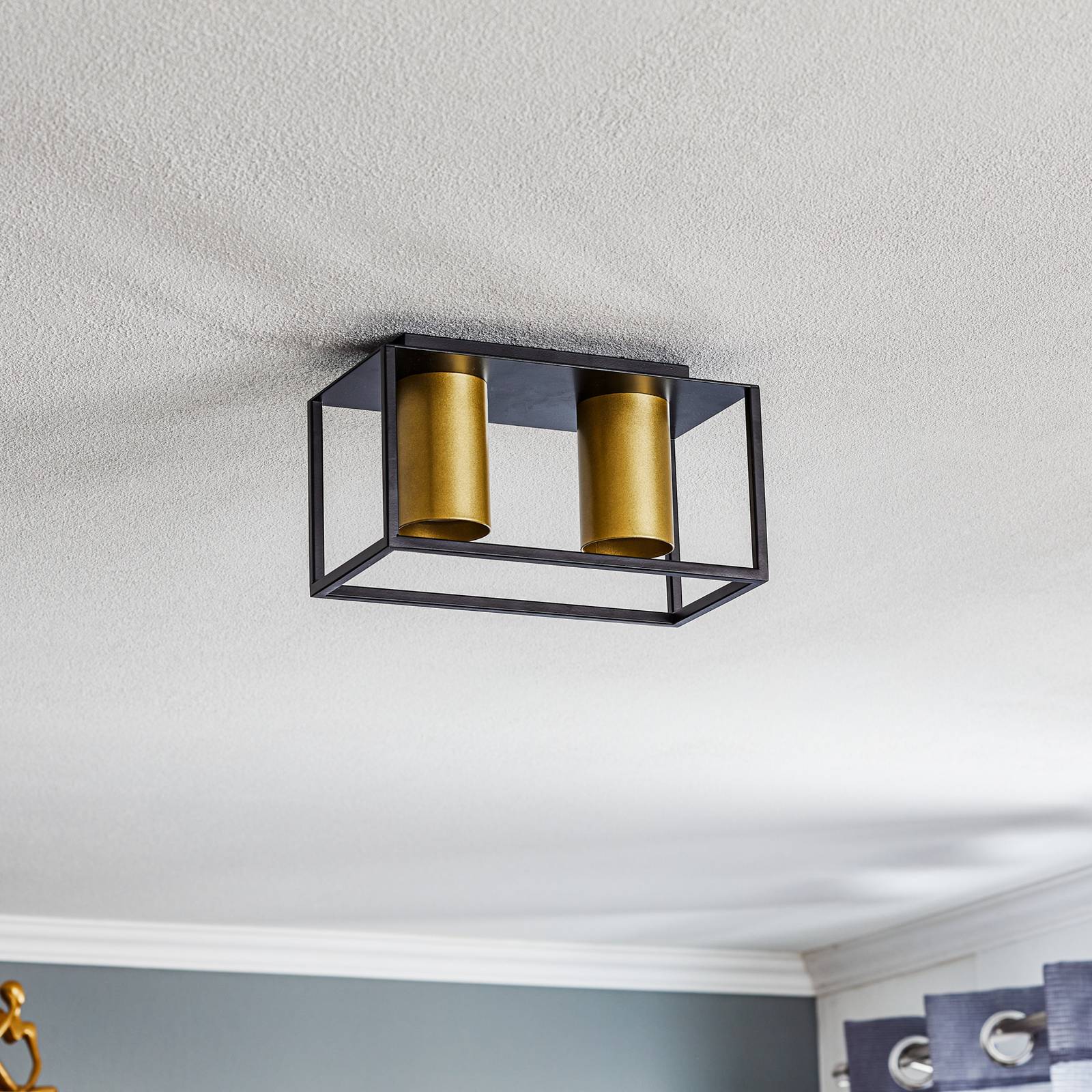 Euluna Stropní spot Tiper s rámem, 2z, černá-zlatá, Obývací pokoj / jídelna, ocel, GU10, 30W, P: 26 cm, K: 15cm