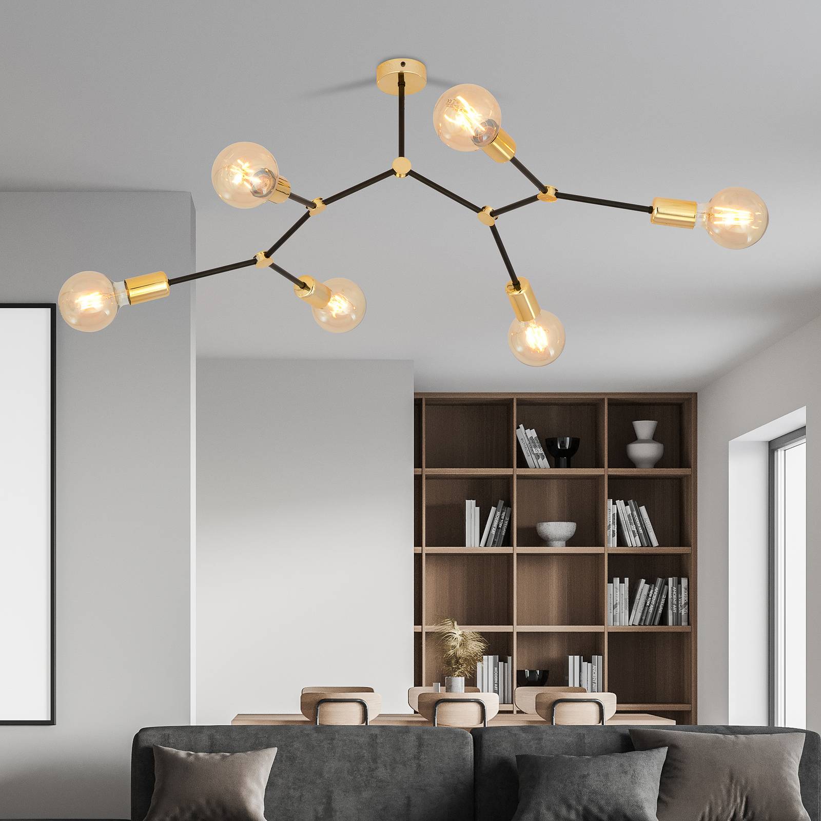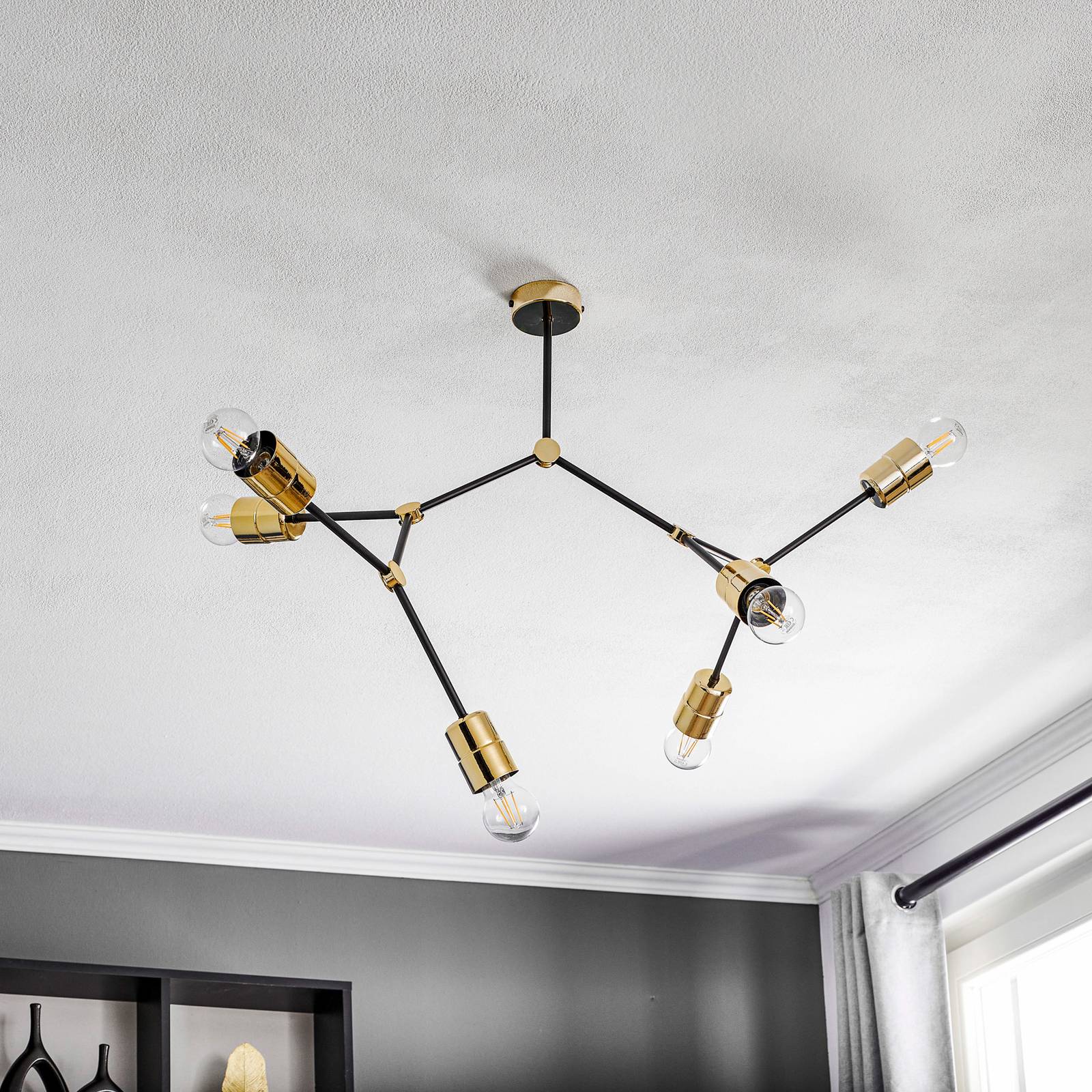 Euluna Stropní světlo Code, šest zdrojů, černá, Obývací pokoj / jídelna, ocel s práškovým lakem, E27, 60W, P: 85 cm, K: 45cm