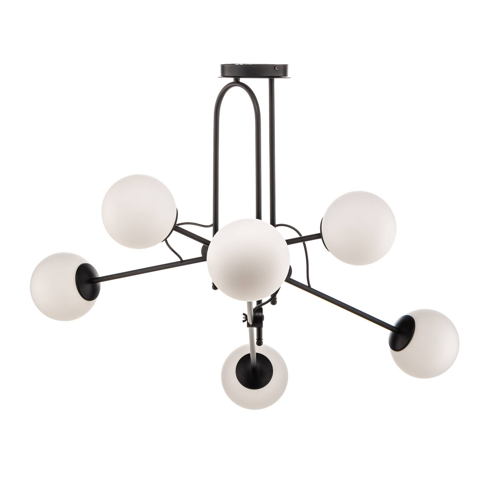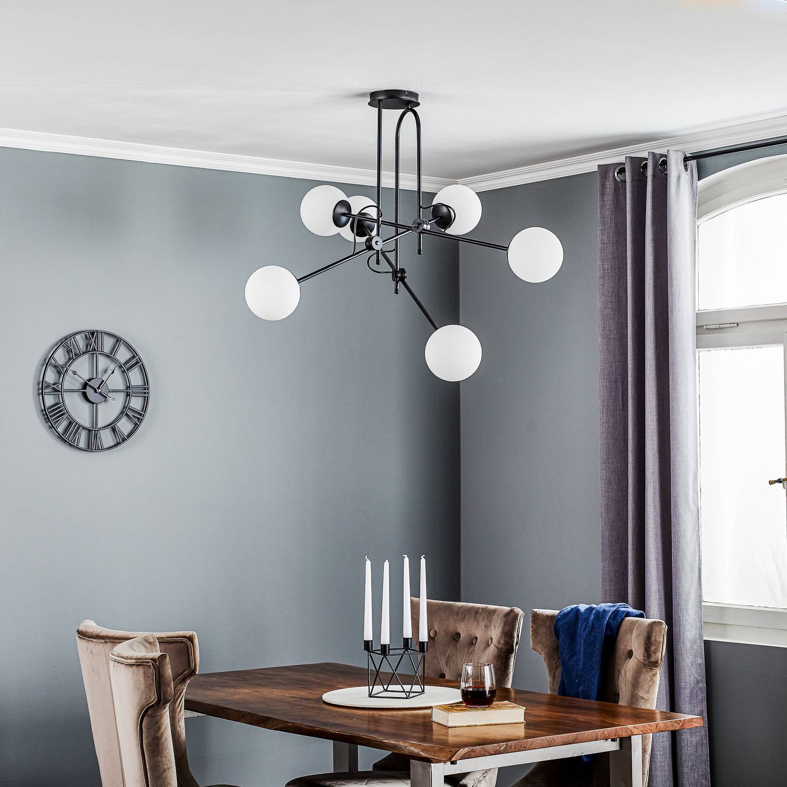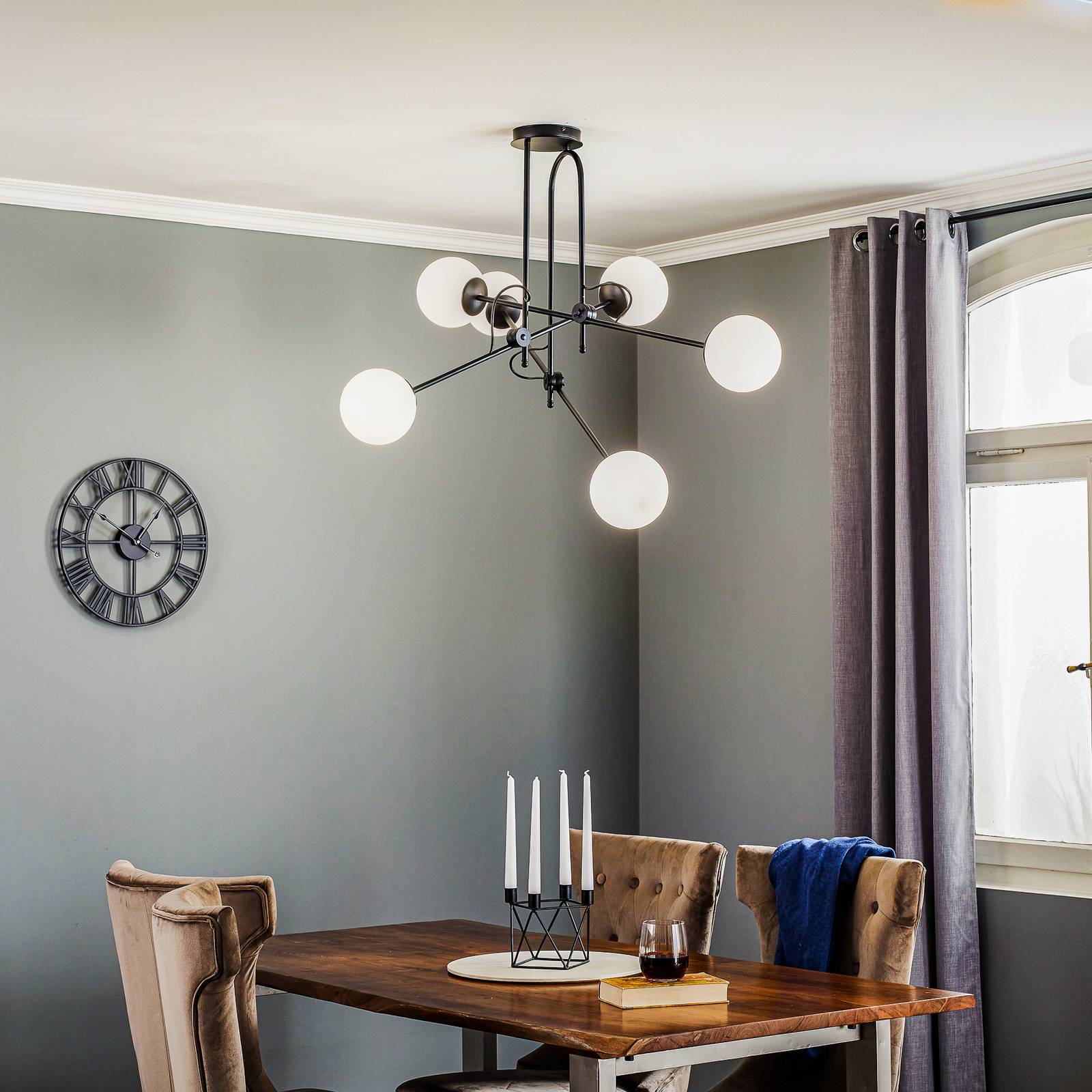 Euluna Stropní světlo Kabo, černá, šest zdrojů, Obývací pokoj / jídelna, ocel práškovaná, sklo, E14, 40W, P: 130 cm, L: 130 cm, K: 56cm