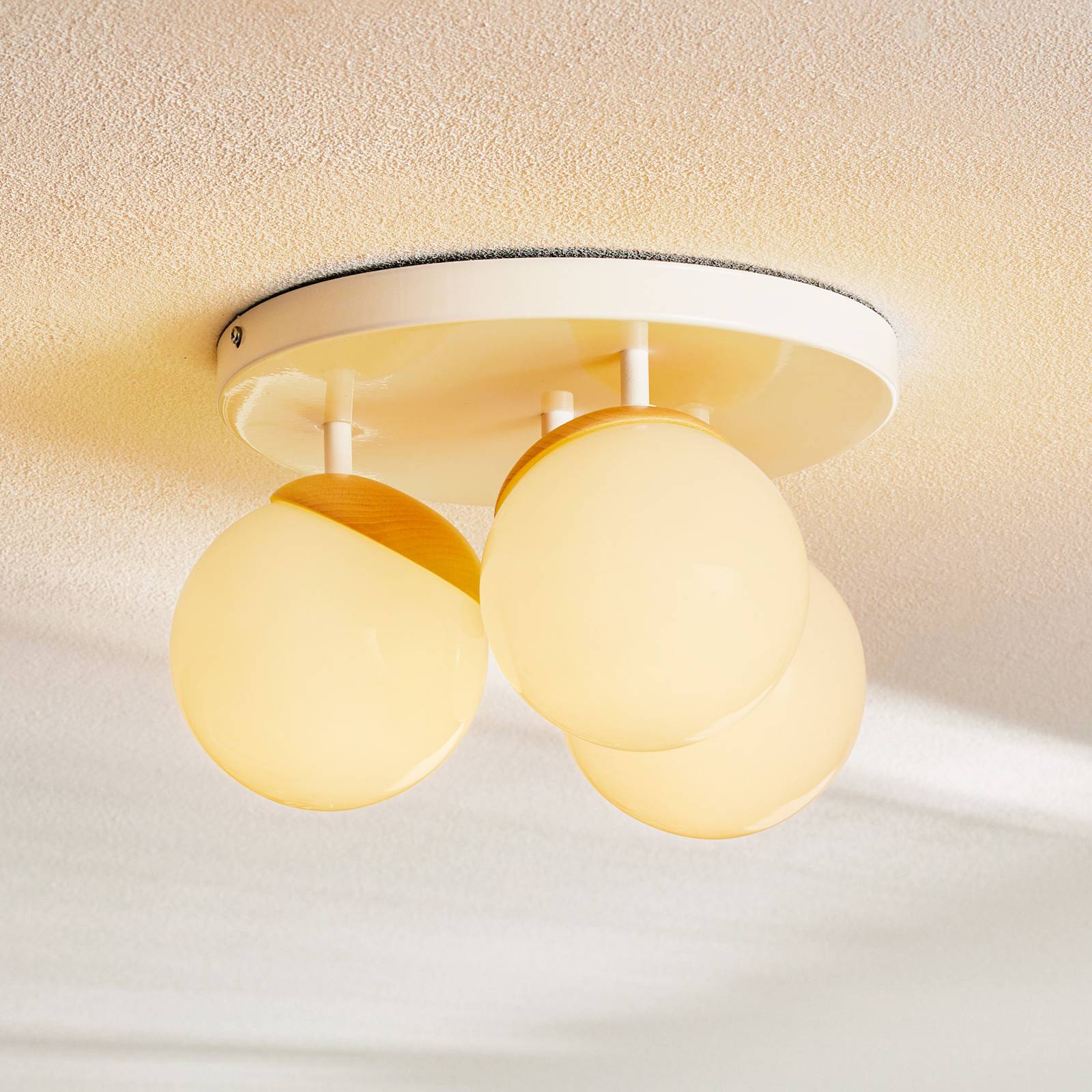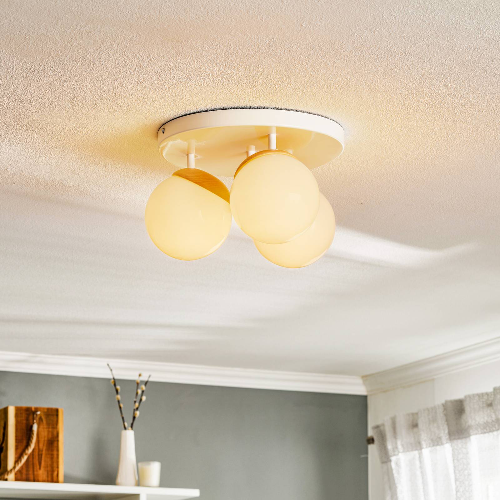 Euluna Stropní světlo Sfera 3 zdroje kulaté sklo/dřevo, Obývací pokoj / jídelna, sklo, dřevo, ocel, E14, 40W, K: 20cm
