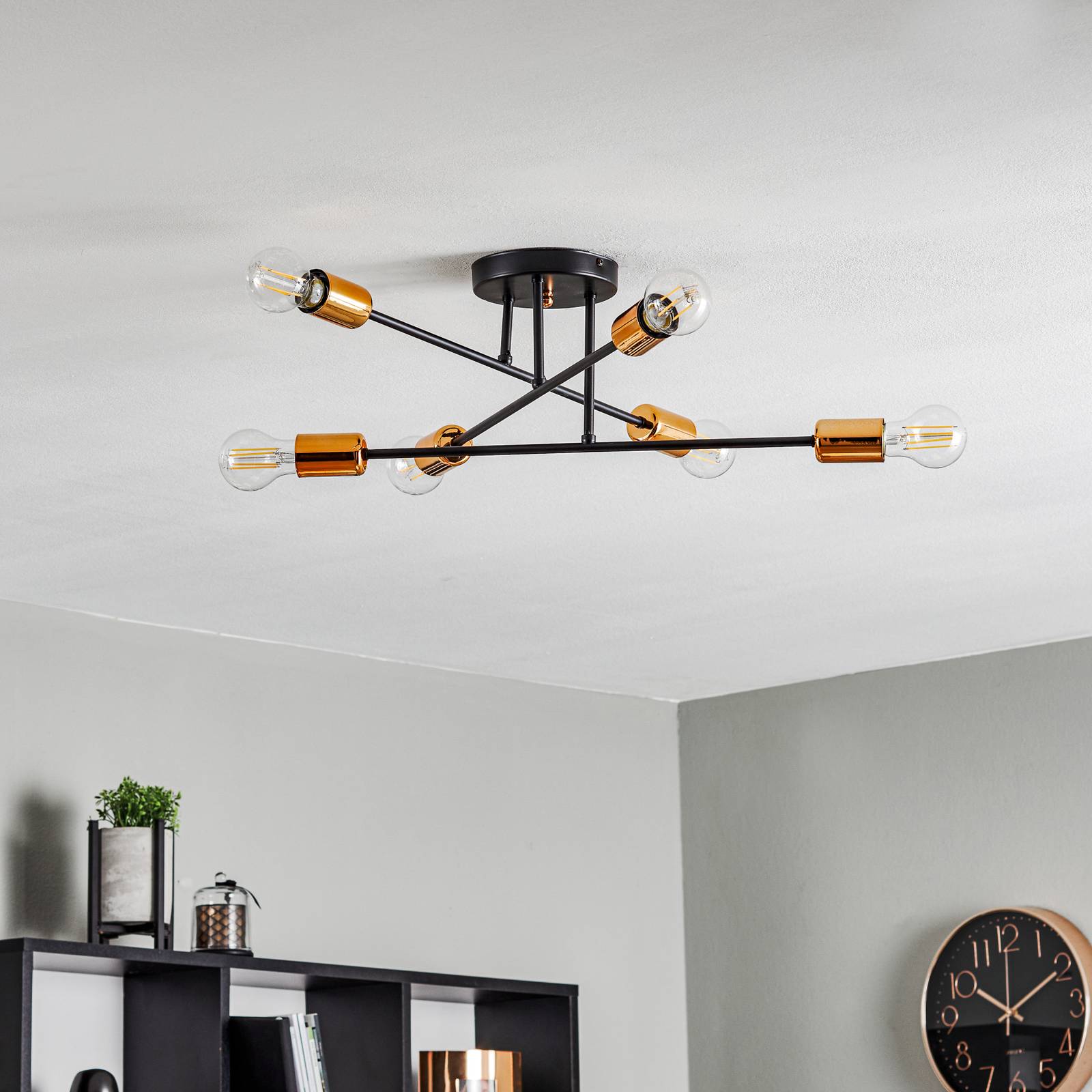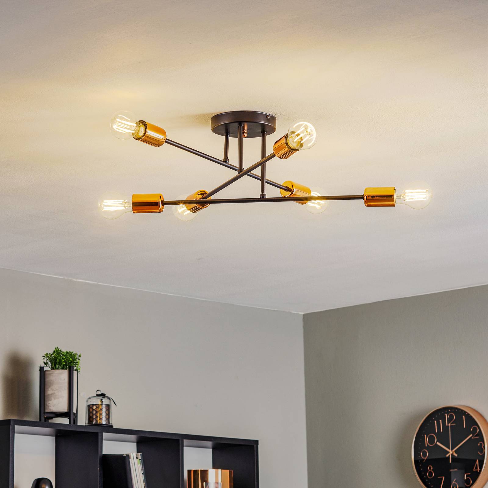 Euluna Stropní světlo Veken 6B v černé barvě a mědi, Obývací pokoj / jídelna, ocel, E27, 60W, P: 55 cm, K: 17cm