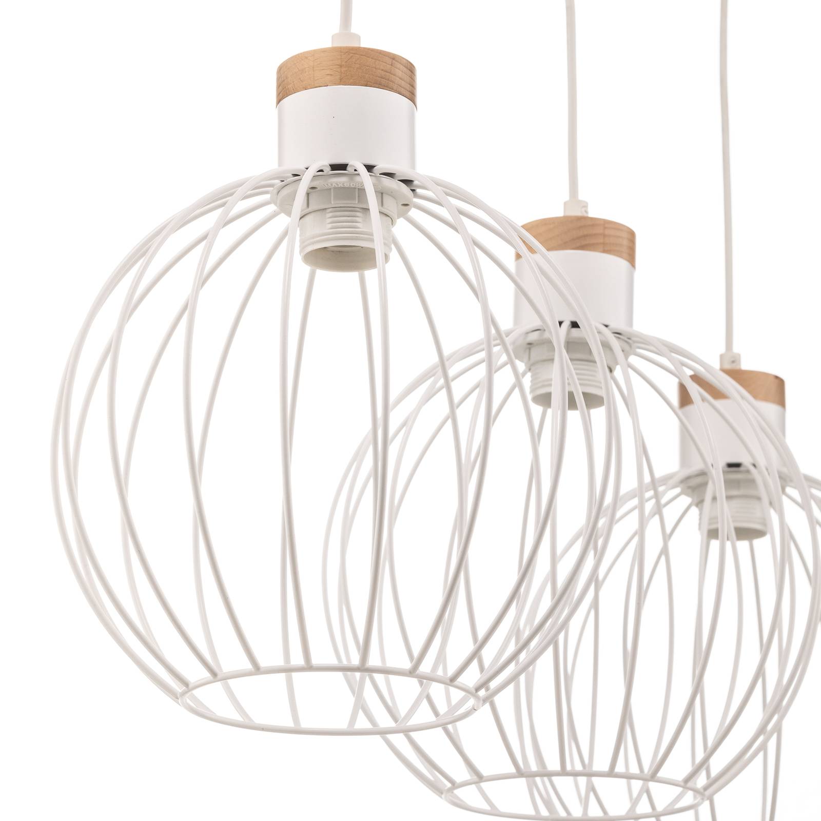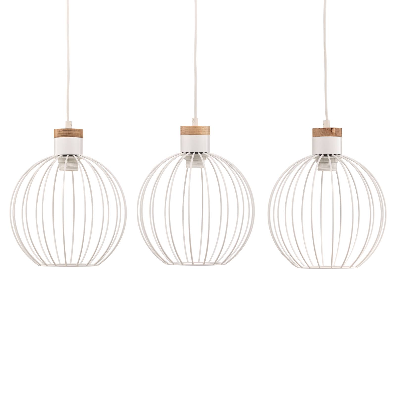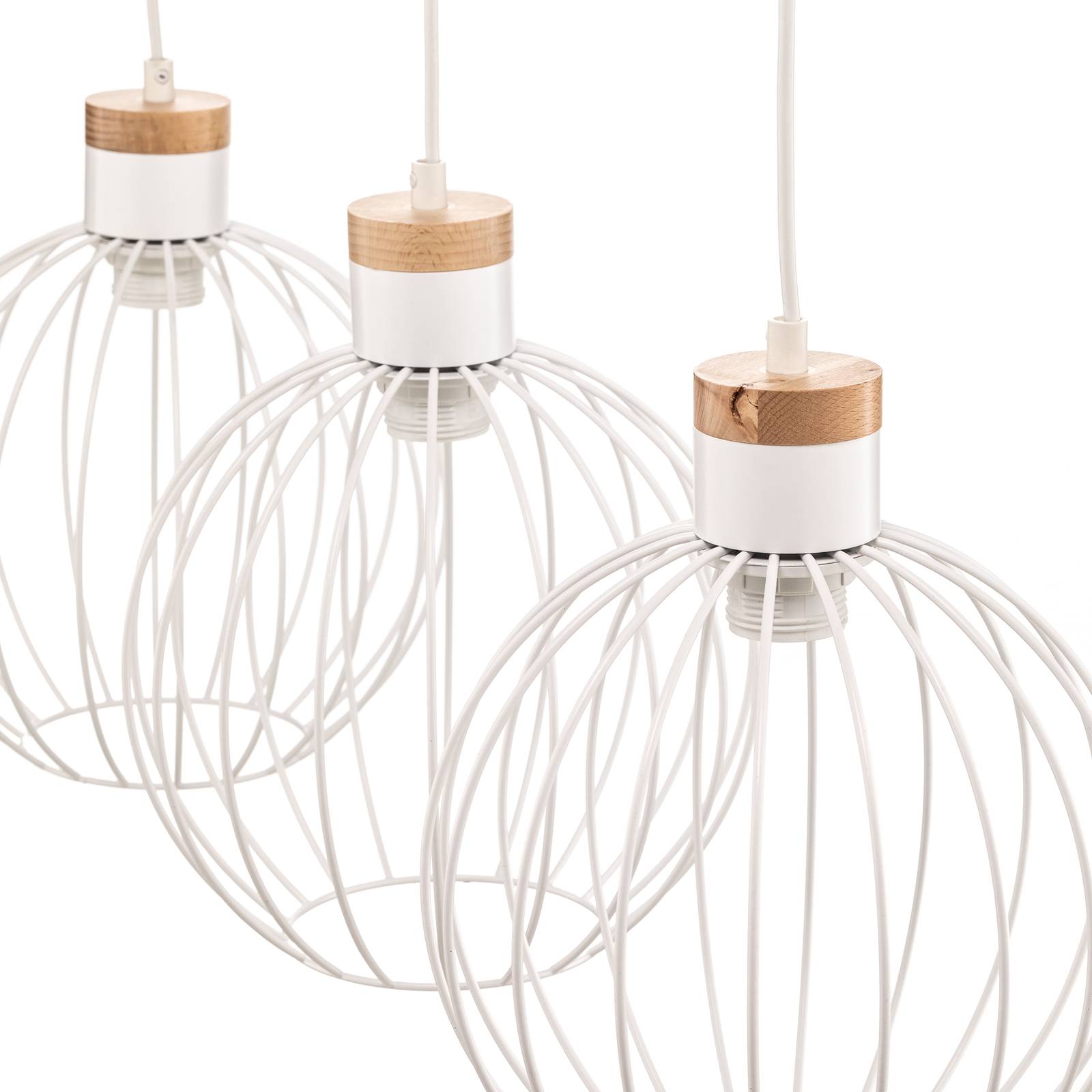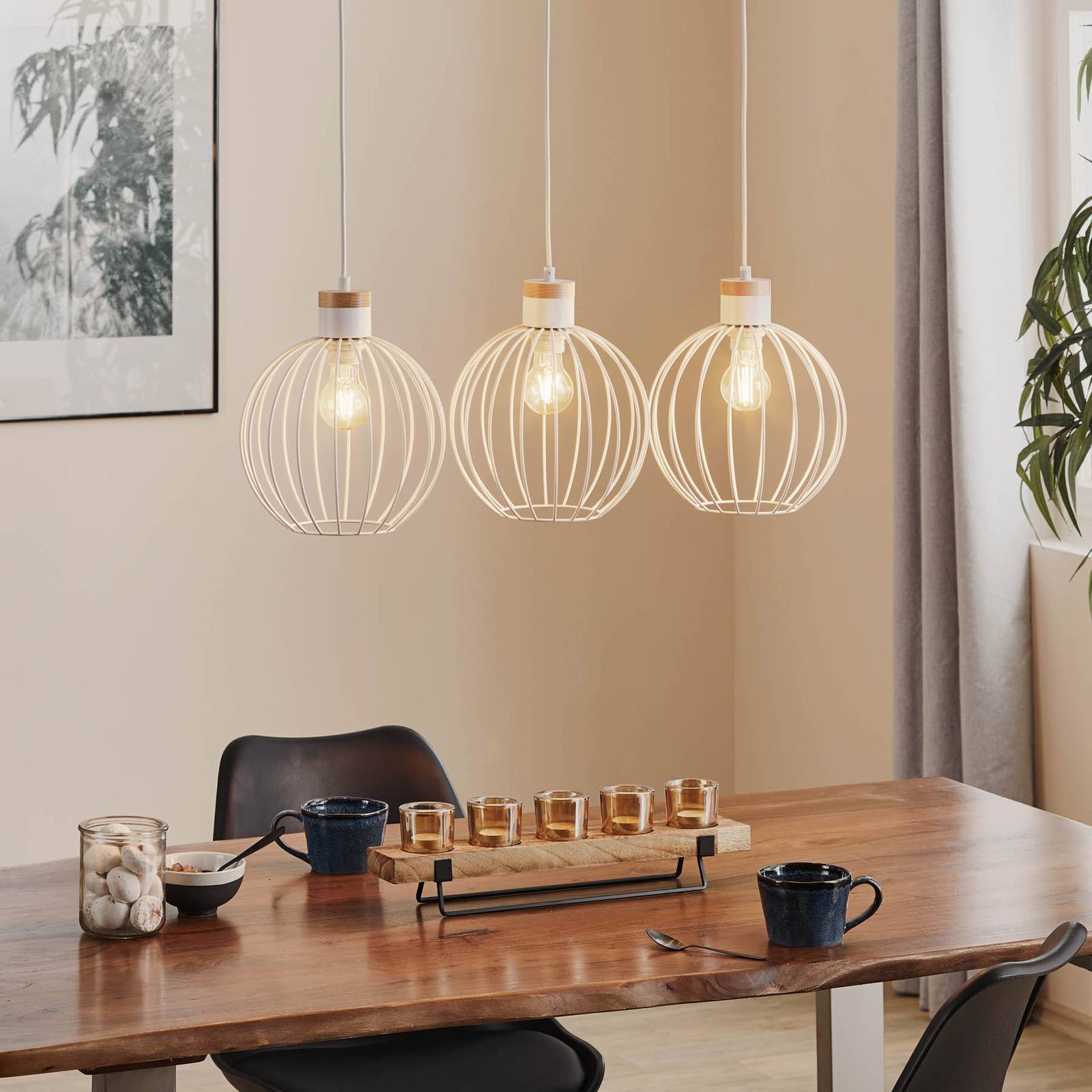 Euluna Závěsné světlo Barbado, tři zdroje v bílé barvě, Obývací pokoj / jídelna, ocel, dřevo, E27, 60W, P: 78 cm, L: 22 cm