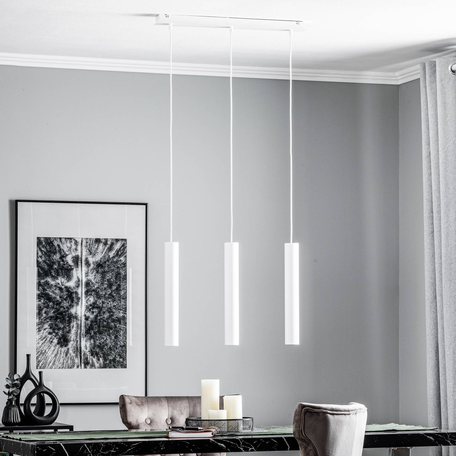 Euluna Závěsné světlo Eye, tři zdroje, tvar nosníku, bílá, Obývací pokoj / jídelna, ocel lakovaná, GU10, 10W, P: 62 cm, L: 6.5 cm, K: 40cm