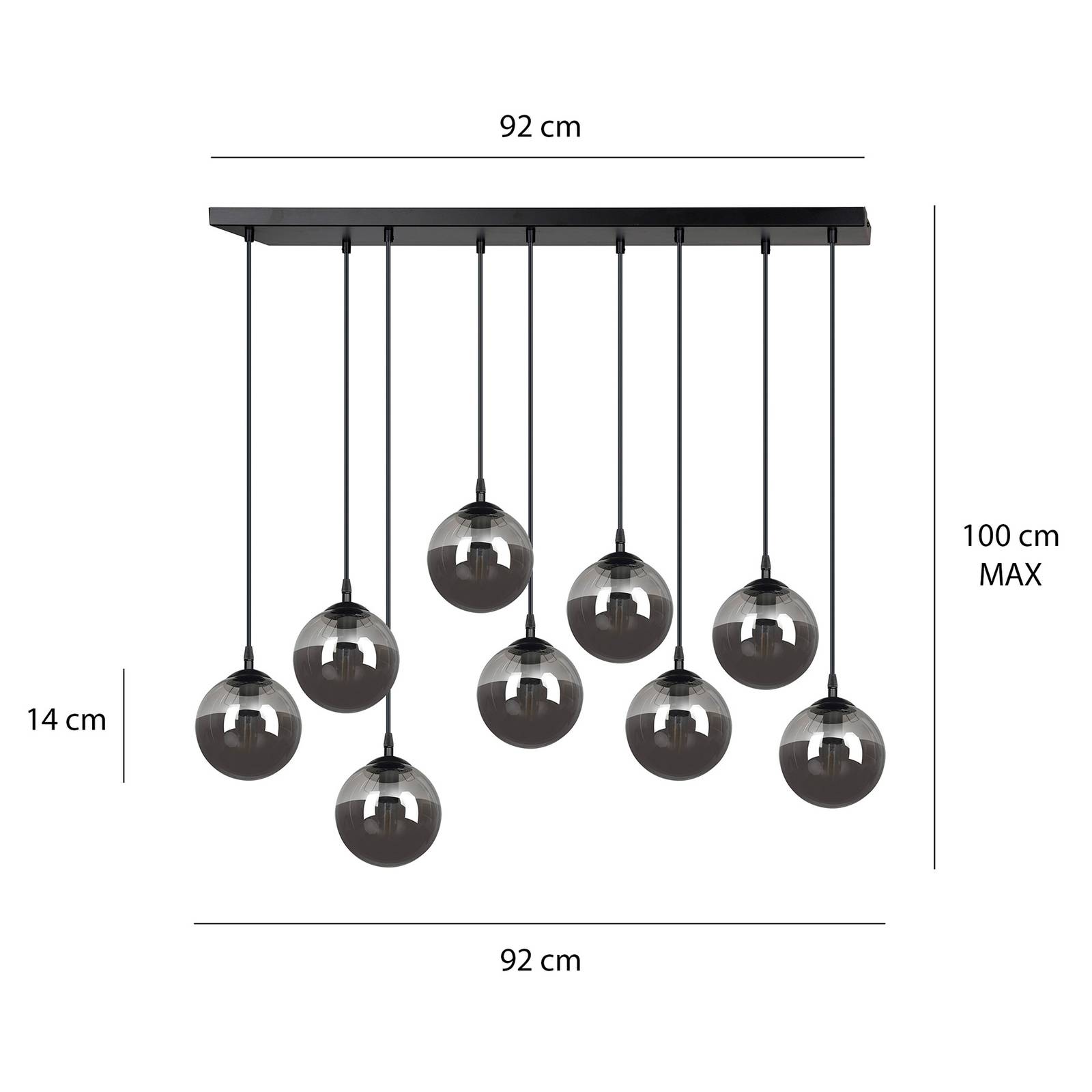 Produkt Euluna Závěsné světlo Glassy 9 zdrojů rovné sklo černá, Obývací pokoj / jídelna, kov, sklo, E14, 40W, P: 92 cm od známého výrobce Euluna nyní pořídíte pouze za 10399.00 CZK a to navíc s dopravou zdarma.
