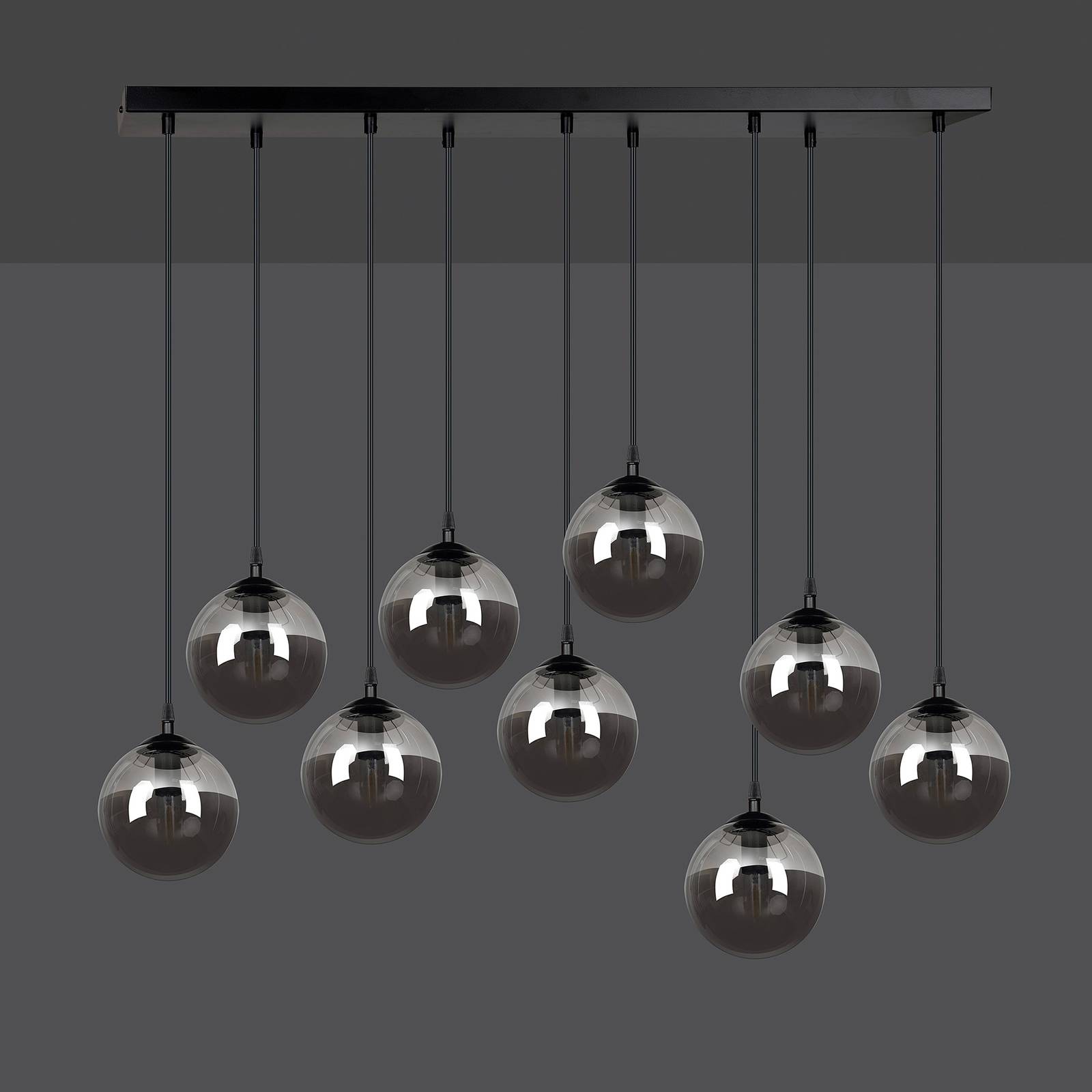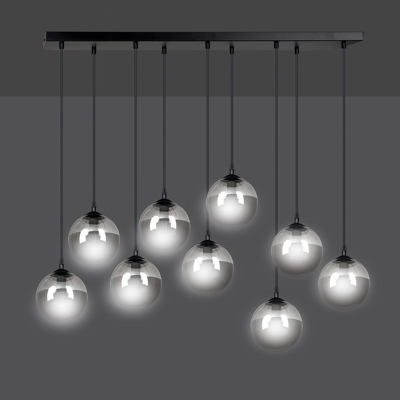 Euluna Závěsné světlo Glassy 9 zdrojů rovné sklo černá, Obývací pokoj / jídelna, kov, sklo, E14, 40W, P: 92 cm