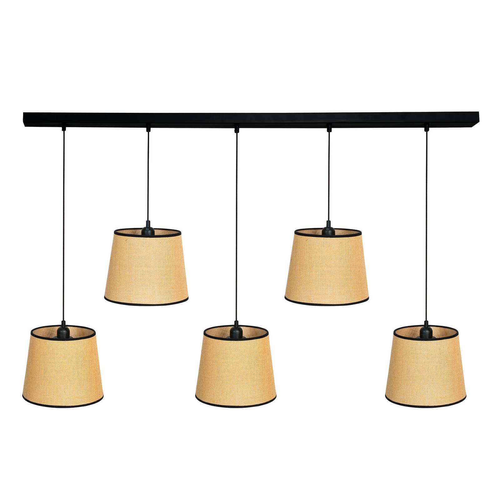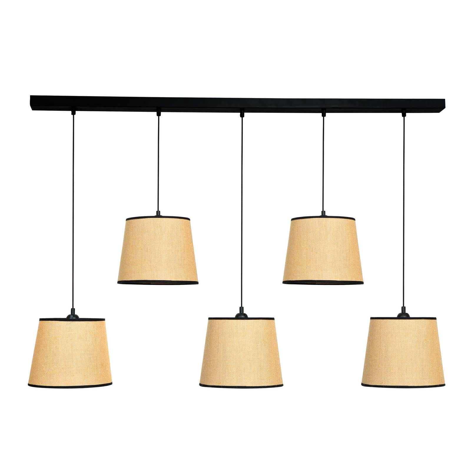 Produkt Euluna Závěsné světlo Jute&black hnědá 5 zdrojů lineární, Obývací pokoj / jídelna, juta textilní, E27, 40W, P: 127 cm, L: 24 cm, K: 20cm od známého výrobce Euluna nyní pořídíte pouze za 7799.00 CZK a to navíc s dopravou zdarma.