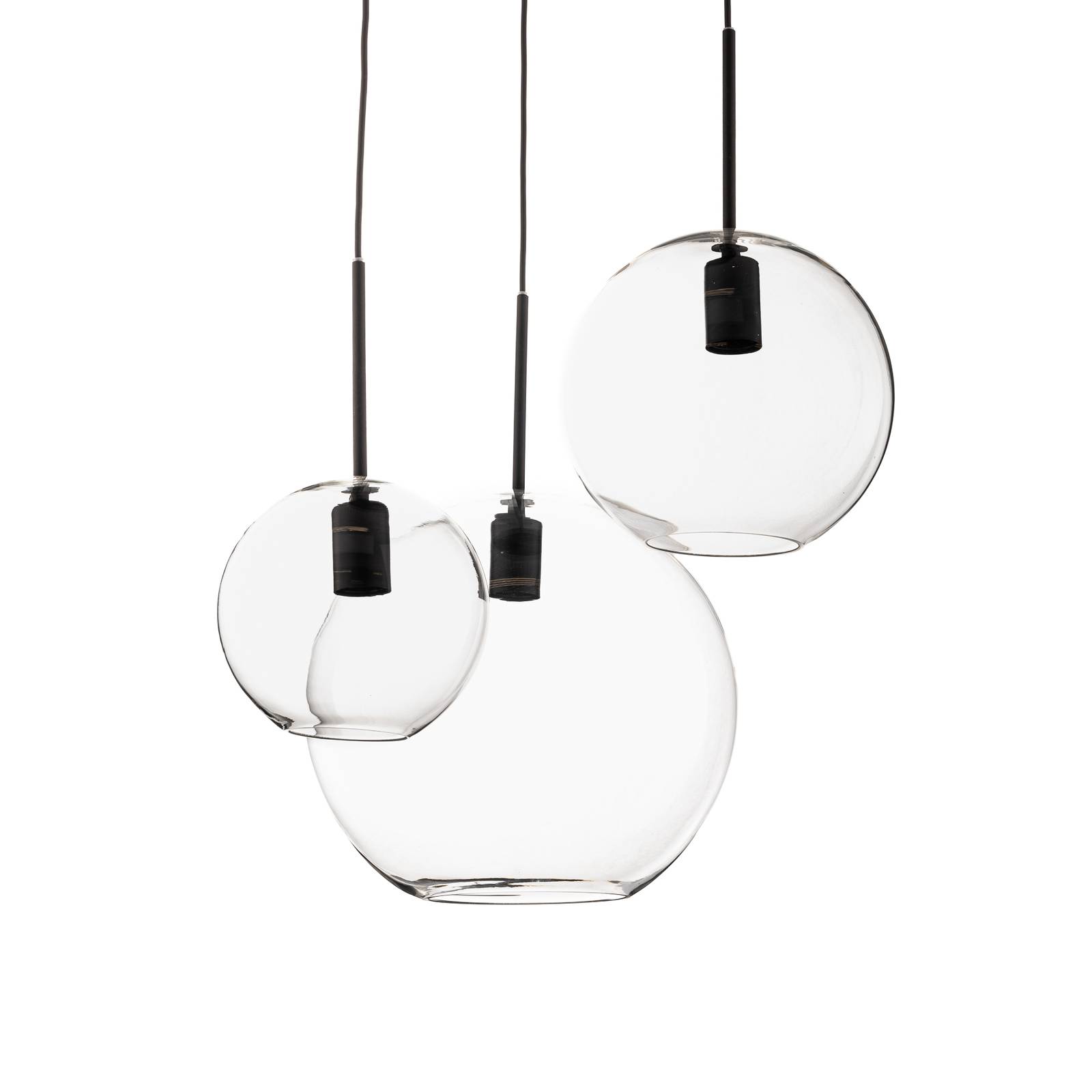 Euluna Závěsné světlo Sphere, tři zdroje, Obývací pokoj / jídelna, sklo, ocel, E27, 40W