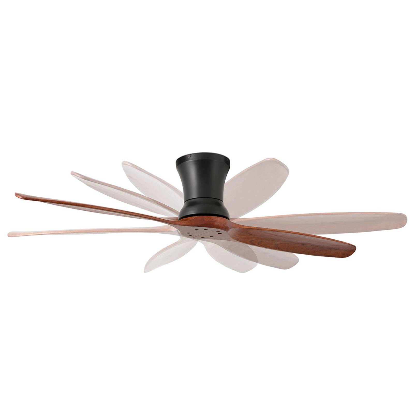Dálkově ovládaný stropní ventilátor Lama s křídly ze dřeva Paulownia a ořechovým povrchem Tento stropní ventilátor je nejen klimatizačním zařízením, které zajišťuje vhodné větrání místnosti po celý rok, ale také zařizovacím předmětem, který svým moderním a přírodním vzhledem vytváří dekorativní akcenty a stylově doplňuje ostatní nábytek. Funkce Stropní ventilátor Lama je vybaven dvěma lopatkami ze dřeva paulovnie s atraktivním ořechovým lakem a mnoha funkcemi, které lze pohodlně nastavit pomocí dodávaného dálkového ovládání, a zajišťuje tak vždy správné klima v místnosti. V závislosti na ročním období lze ventilátor přepnout buď na přímý proud, který v horkých letních dnech zajišťuje osvěžující vánek, nebo na zpětný proud, takže v zimě zajišťuje rovnoměrnou cirkulaci teplejšího topného vzduchu stoupajícího vzhůru. Kromě toho má tři různé úrovně rychlosti, takže je zaručeno větrání místností s nízkou spotřebou a orientované na potřeby. Technické údaje Výkon na rychlost: – 16 wattů při 84 otáčkách za minutu – 27 wattů při 114 otáčkách za minutu – 44 wattů při 143 otáčkách za minutu