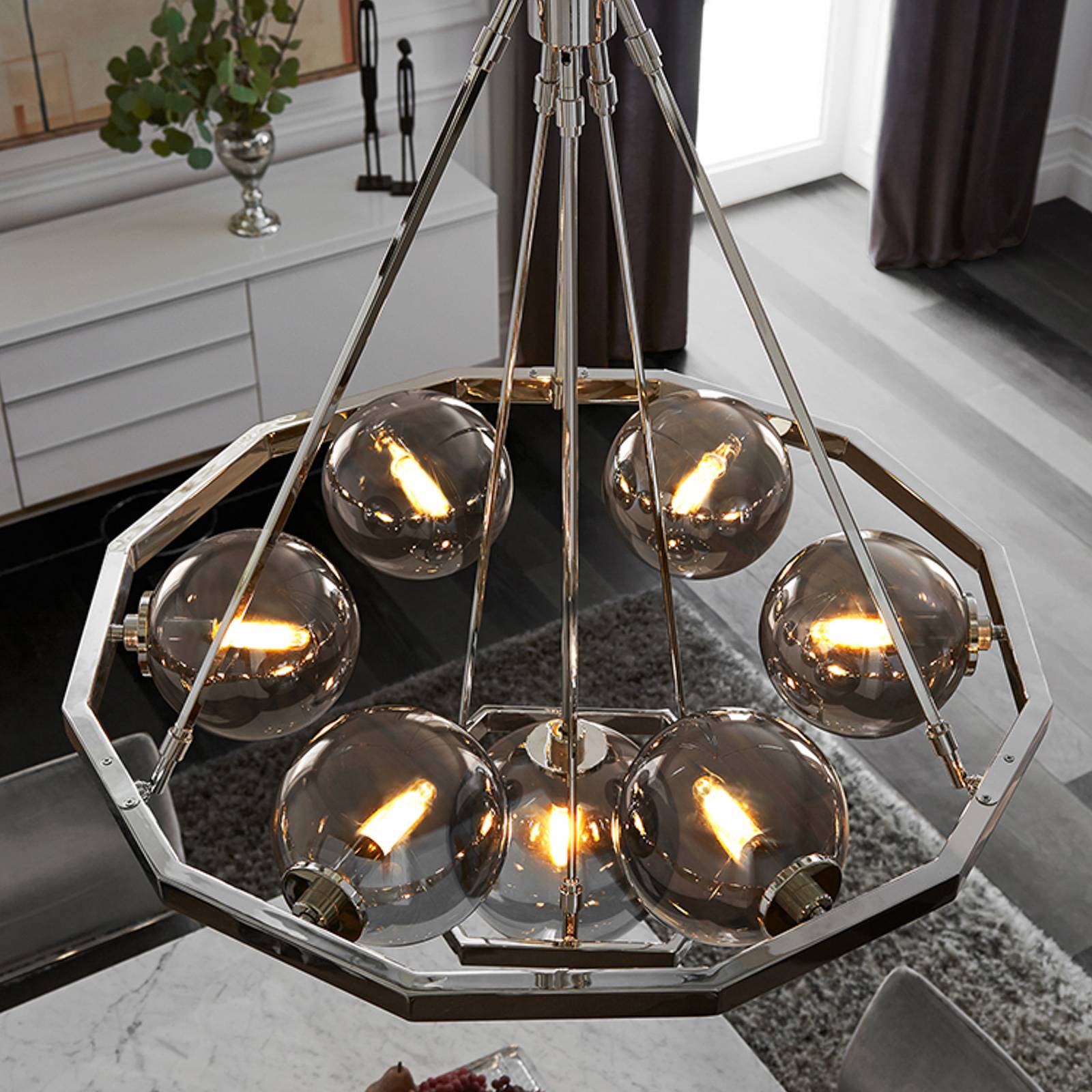 FEISS Závěsné světlo Harper, kouřová stínidla, 7 zdrojů, Obývací pokoj / jídelna, ocel, kouřové sklo, E14, 60W, K: 69.2cm