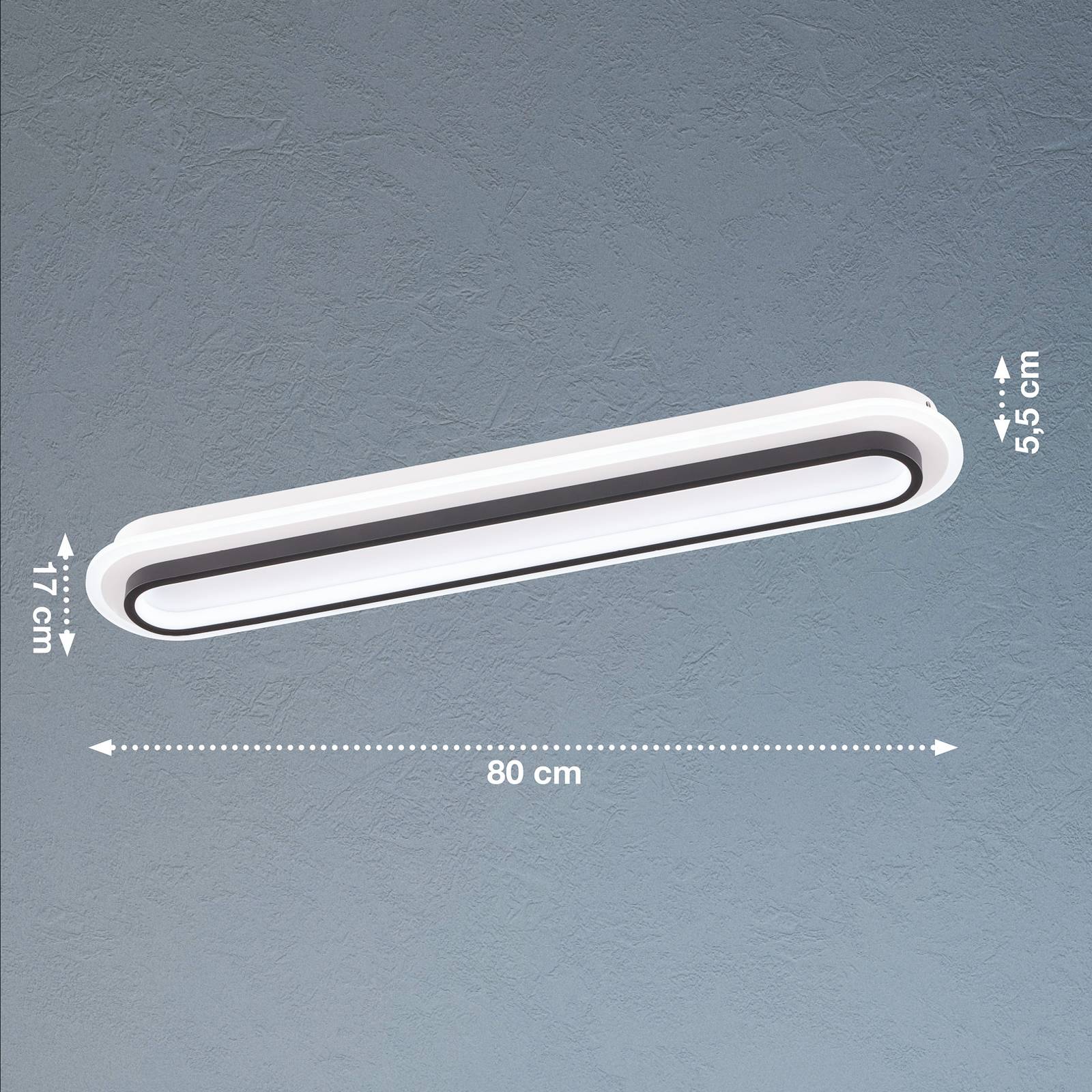 Stropní LED svítidlo Blithe v dlouhém a úzkém tvaru, stmívatelné pomocí nástěnného vypínačeSpeciální vlastností dlouhého a úzkého stropního LED svítidla Blithe je jeho stmívatelnost pomocí stávajícího vypínače. Několikanásobným stisknutím lze prostřednictvím spínače světla přepínat jas svítidla ve třech úrovních bez dalších nároků na instalaci.