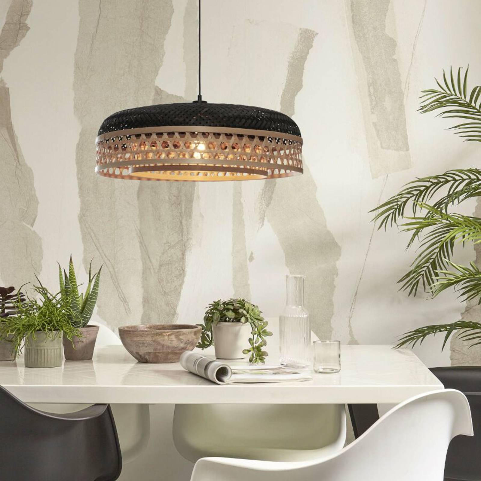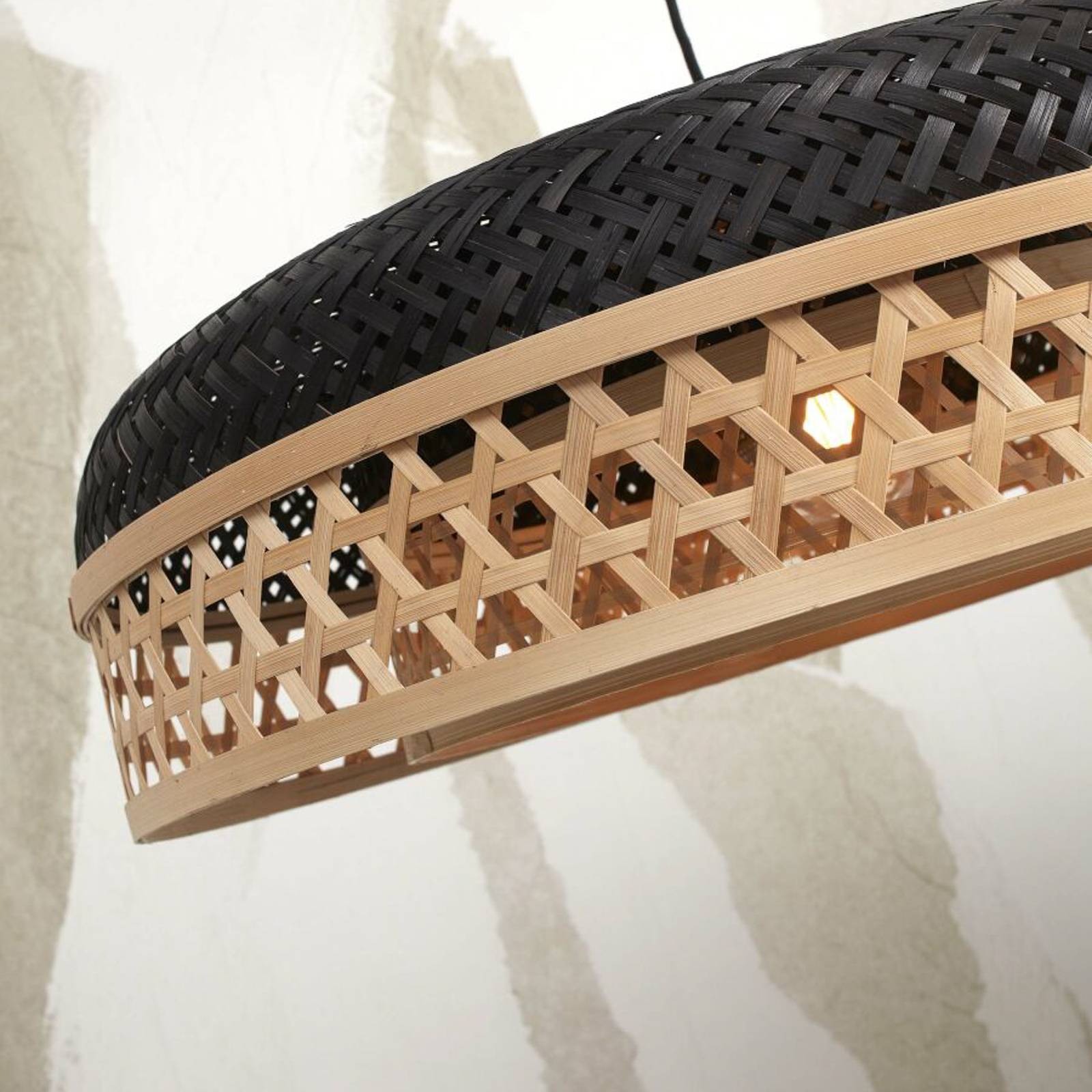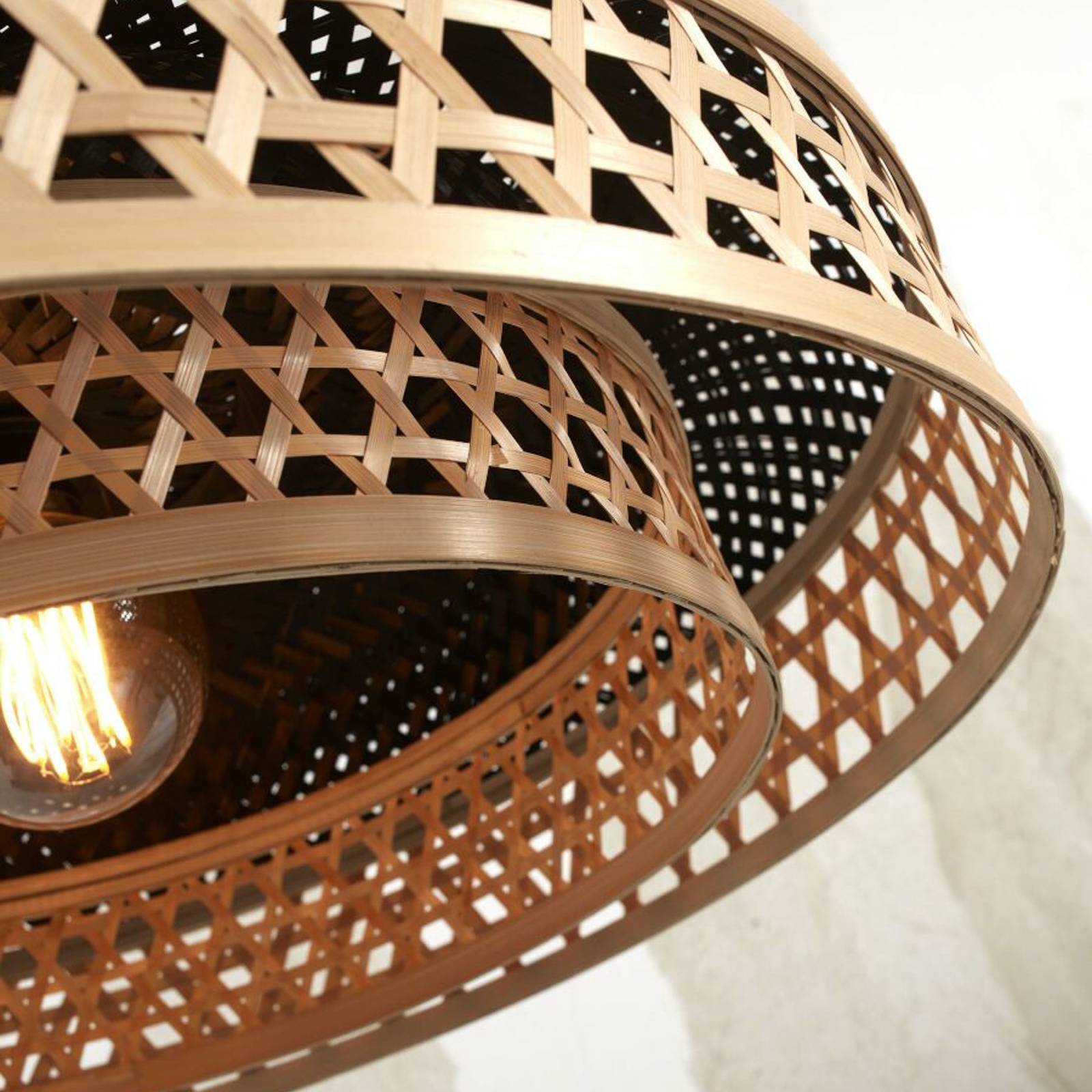 EInflamme Závěsná lampa Ubud s dvoubarevným stínidlem z bambusuZávěsná lampa Ubud je vyrobena z bambusu a je ideální pro osvětlení obývacího nebo jídelního stolu, ale lze ji použít i jako závěsnou lampu v ložnici. Závěs a horní strana stínidla jsou v černé barvě. Spodní část je vyvedena v přírodní barvě. Stínidlo je navíc ručně vyrobené a dvouvrstvé, takže uvnitř je další stínidlo v menším tvaru. Obě stínidla mají dekorativní vzor, díky němuž je závěsná lampa v obývacím prostoru výjimečnou ozdobou, i když je vypnutá. o Good & Mojo:- udržitelná, sociální značka- velká část svítidel je ručně vyráběna řemeslníky v malých komunitách ve Vietnamu- udržitelné materiály z rostlin, které se hojně vyskytují v jihovýchodní Asii- za každou prodanou lampu obdrží nadace WakaWaka příspěvek a prostřednictvím projektů zalesňování Eden je také vysazen strom