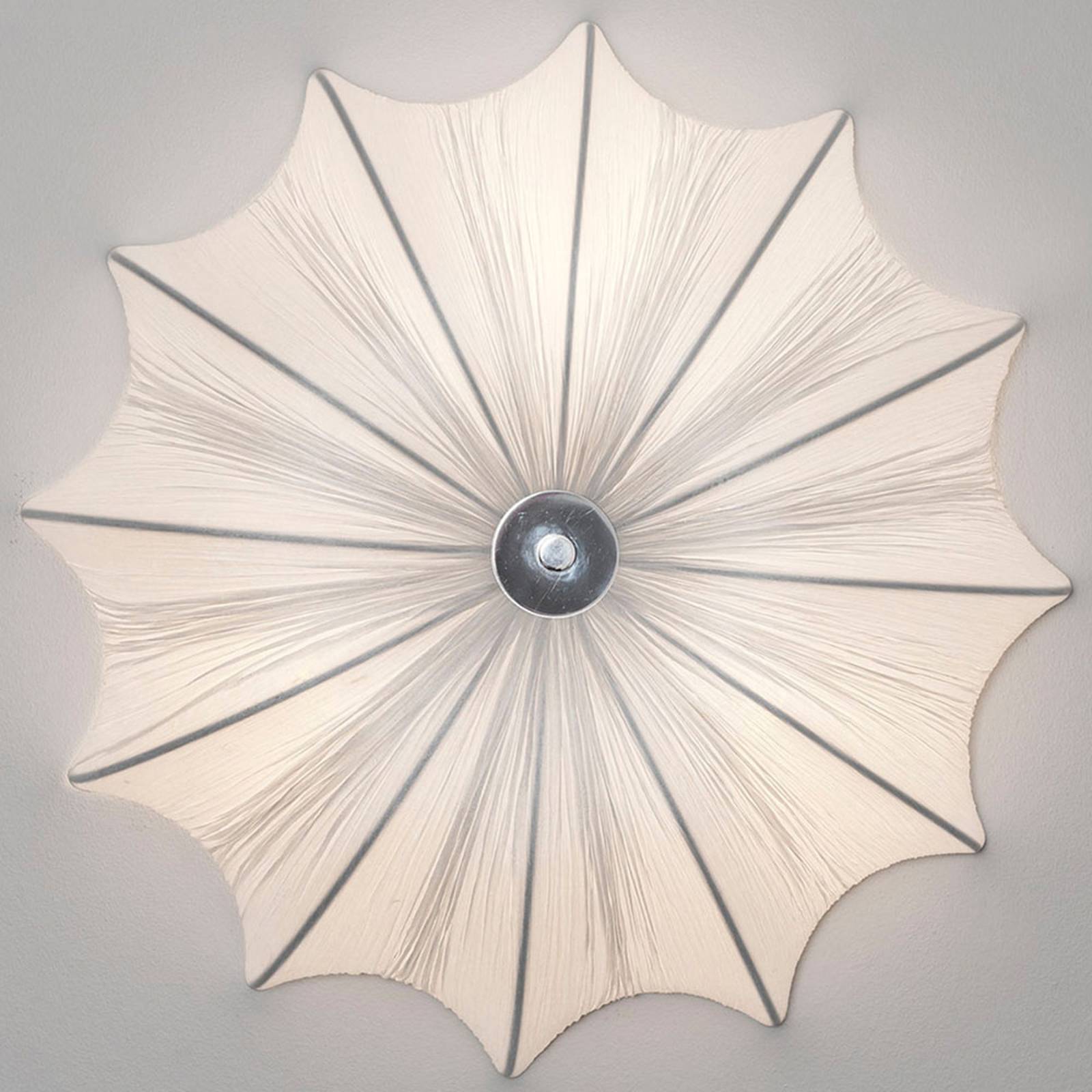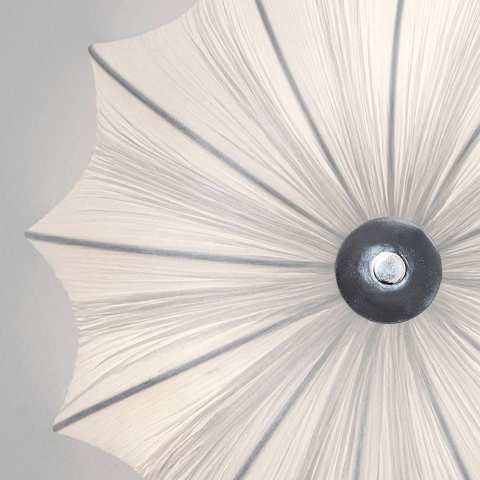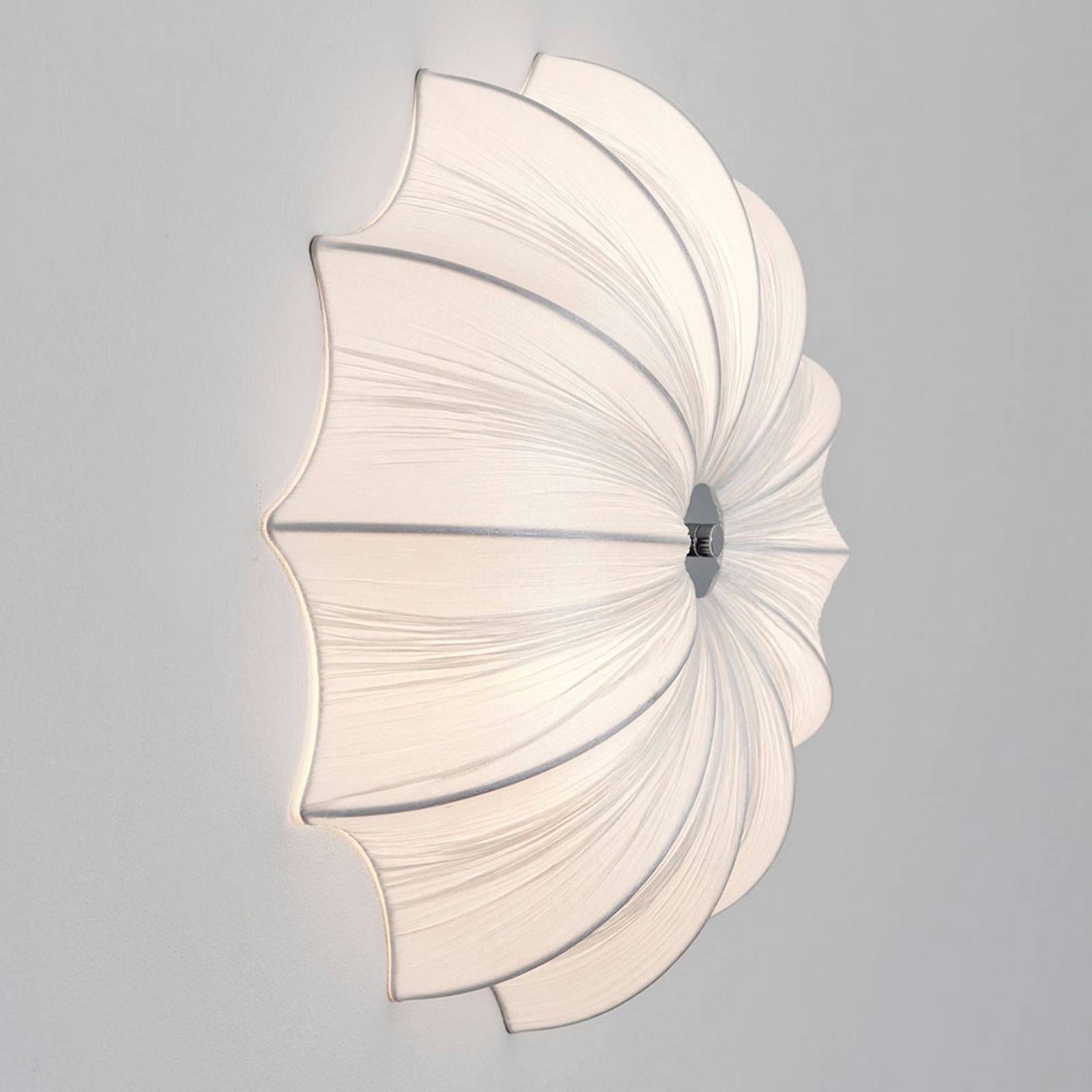 Bílé textilní nástěnné svítidlo Sultano Rotondo – lze také připevnit na strop Zde se zdá, že je přes zeď napnutý slunečník – to je látkové stínění nástěnné lampy Sultano. Je vyroben z dvouvrstvé bavlny odpuzující nečistoty a na scénu ho přivádí světlo ze tří lamp s paticí E27. Svítidla nejsou součástí dodávky. Vhodné žárovky (včetně LED žárovek s odpovídající paticí) jsou k dispozici jako příslušenství. Velká nástěnná lampa, která přispívá k atraktivnímu konceptu osvětlení s jemnou záře a zároveň má vysokou dekorativní hodnotu. – externě stmívatelné