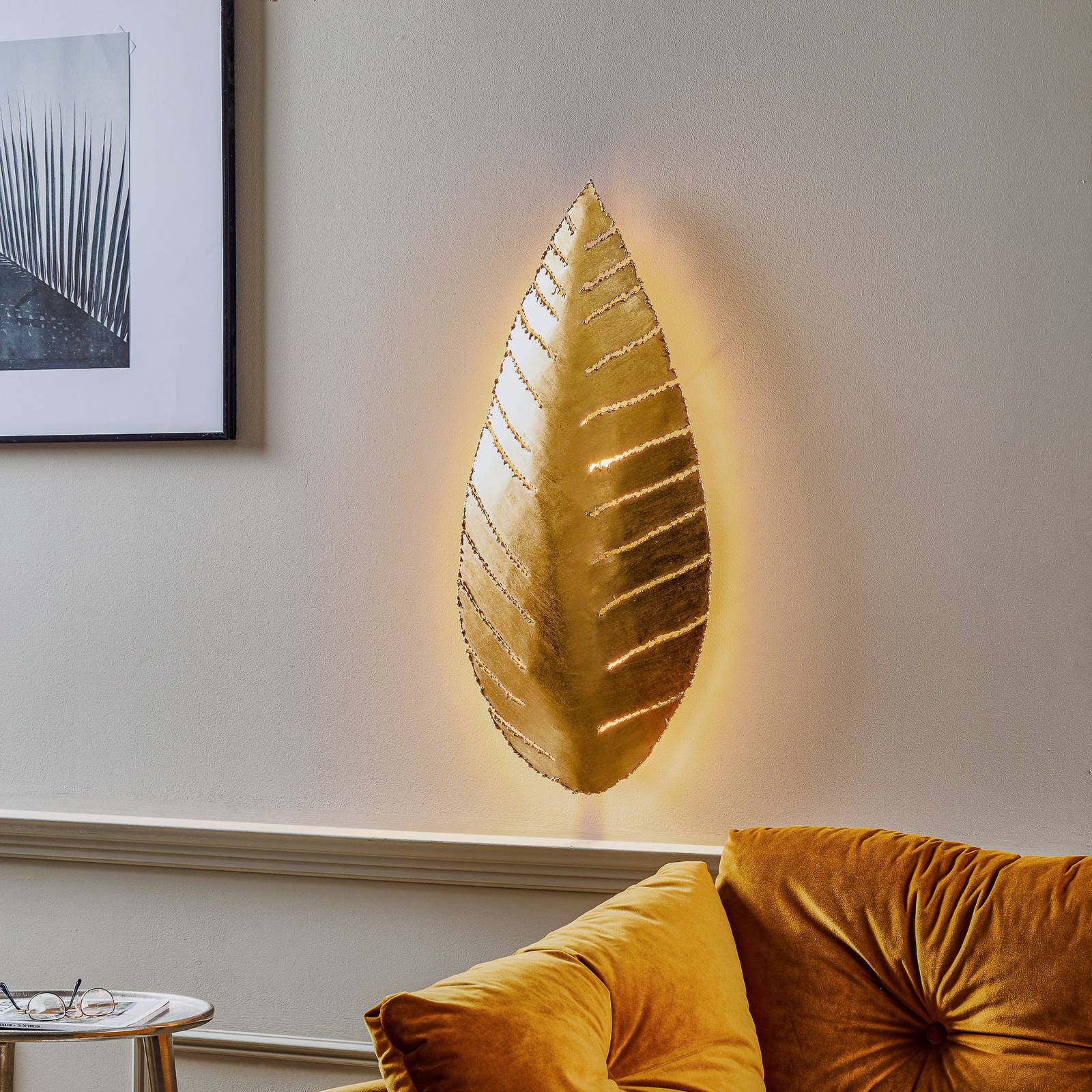 Krásné a stylové nástěnné světlo Pietro Toto nástěnné svítidlo zaručeně upoutá pozornost každého: ve tvaru listu se bez problémů a decentně přizpůsobí jakékoli stěně. Zlatý vzhled mu dodává něco zvláštního a poskytuje osvětlení jako ve snu. Nástěnné světlo Pietro je dekorativním prvkem i ve zhasnutém stavu.