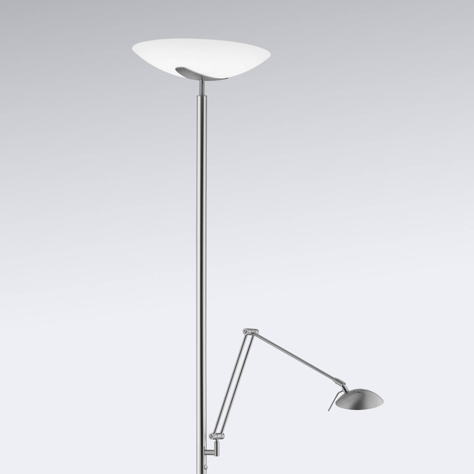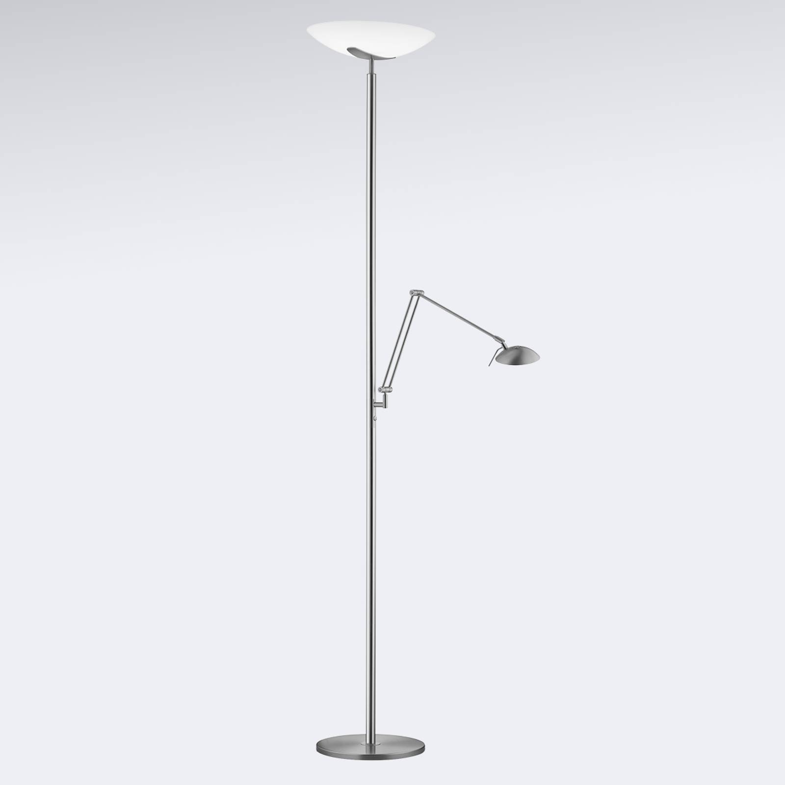 Stropní reflektor a světlo na čtení v jednom: stojací lampa Lya LEDStojací lampa Lya LED kombinuje atmosférické akcentní osvětlení s praktickým světlem na čtení. V oválné hlavici stropního svítidla poskytují vysoce intenzivní LED diody teplé bílé světlo s barevnou teplotou 3 000 Kelvinů, zatímco čtecí lampička je vybavena LED diodami, které mají barevnou teplotu ještě útulnějších 2 900 Kelvinů. Jas lze regulovat pomocí dotykového stmívače v šachtě. Dokonalé světlo je řemeslem výrobce svítidel Knapstein. Již více než 50 let spojuje společnost Knapstein mistrovské řemeslné zpracování, moderní technologie a nadčasový design a vytváří svítidla do obývacích pokojů a svítidla pro veřejné zakázky v dokonalé harmonii. Všechna svítidla Knapstein jsou vyráběna s nejvyšší přesností v Německu.