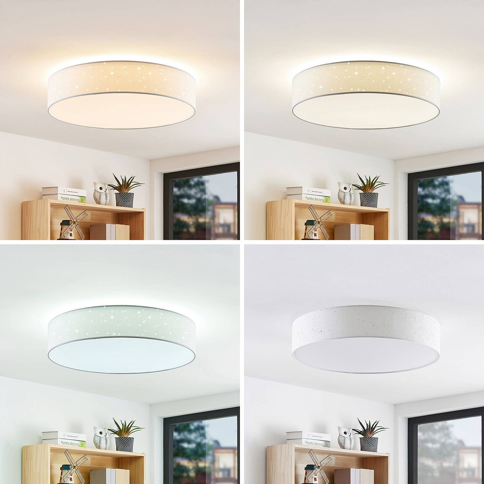 Stropní LED svítidlo Ellamina s funkcí stmívání a časovače, změna barvy CCT Stropní LED svítidlo Ellamina zaujme svým funkčním designem. Svítidlo má nejen praktickou funkci nočního světla, ale jeho jas a teplotu světla lze také nastavit pomocí dálkového ovládání, které je součástí dodávky. Funkce stmívání je plynulá a teplotu světla lze nastavit od teplé bílé až po denní světlo ve třech různých úrovních. Stínidlo je vyrobeno z textilu a funguje jako difuzér, který jemně rozptyluje světlo, a tím ho rovnoměrně a bez oslnění rozvádí po místnosti. Design je moderní a příjemný po všech stránkách. Povrch stínu má třpytivé efekty. Přesněji řečeno, jedná se o děrování v látce, které po zapnutí LED světelného zdroje připomíná hvězdnou oblohu.