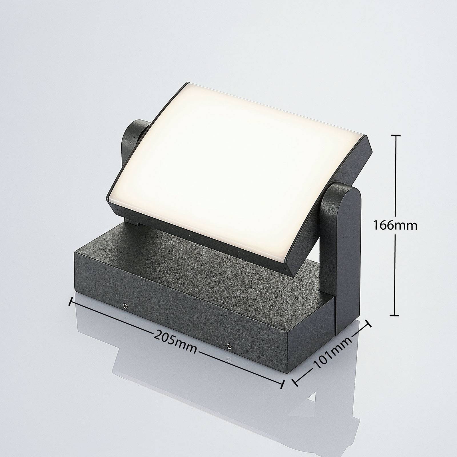 Nastavitelné LED venkovní nástěnné svítidlo Sherin Ploché, hranaté stínidlo LED venkovního nástěnného svítidla lze naklápět až o 340°, takže světlo lze individuálně upravit a je možné přímé i nepřímé osvětlení. Hliníkové těleso má tmavě šedý povrch, který vypadá příjemně nadčasově, celkový design je díky tomu velmi moderní. Pevně zabudované LED svítí jasně, ale šetří energii – ideální pro moderní uživatele.