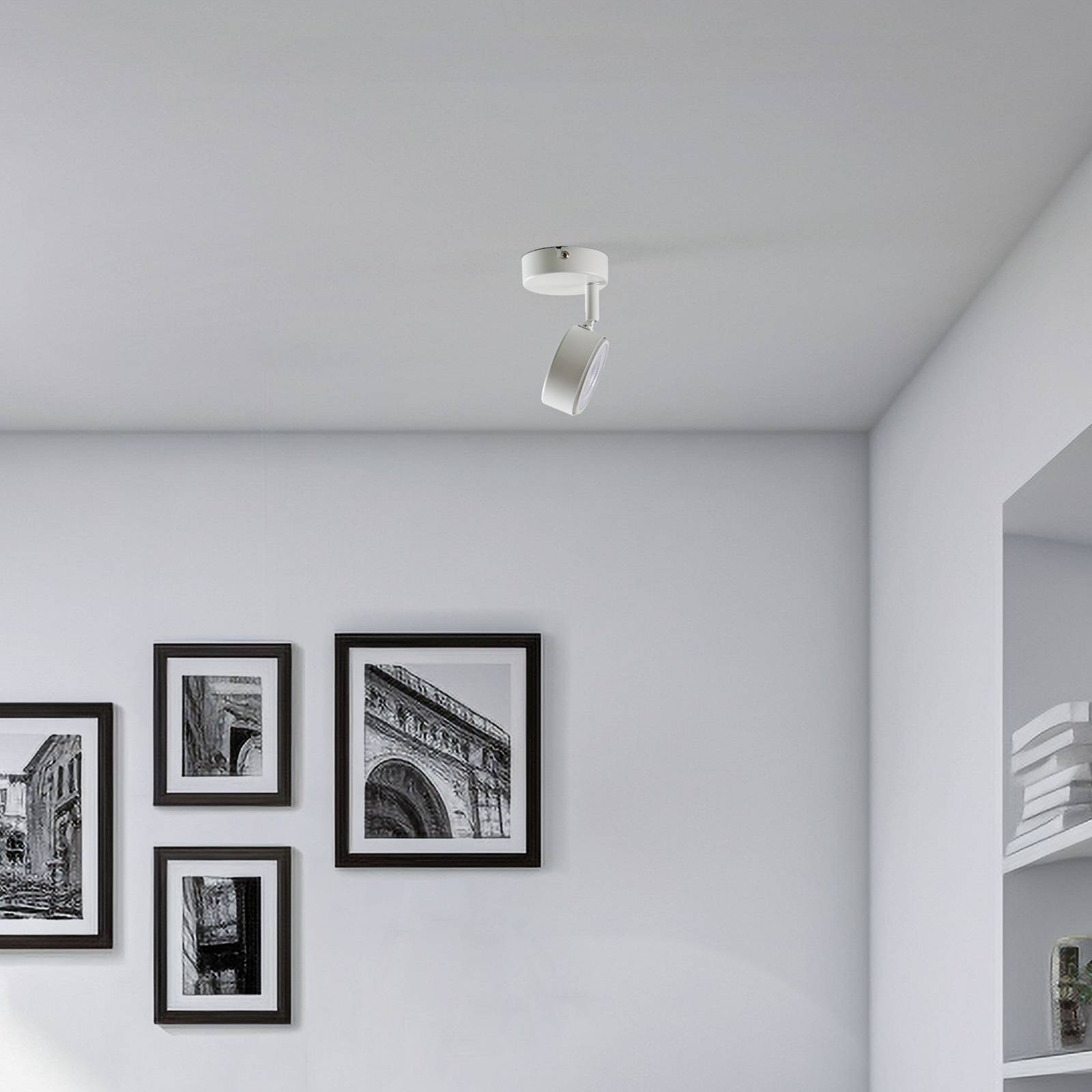 Bílé bodové svítidlo Jyla s nastavitelným stínidlem, stmívatelné Stropní jednoplamenné svítidlo Jyla je vyrobeno ze železa a díky svému bílému povrchu dodává okolí elegantní nádech. Zároveň se díky svému nenápadnému designu snadno začlení do různých obytných prostor. Je ideální například pro použití jako zdroj světla v předsíni, kuchyni, obývacím pokoji nebo jídelně. Kulaté stínidlo je nastavitelné, což umožňuje individuální směrování světla a zajišťuje optimální osvětlení místnosti. Světelný zdroj GX53 je součástí dodávky a světlo lze zapínat a vypínat obvyklým způsobem pomocí nástěnného vypínače. Díky technologii třístupňového stmívání s integrovanou funkcí vypnutí jej lze také několikanásobným stisknutím spínače ztlumit na tři různé úrovně jasu: 100 %, 50 % a 12 %.