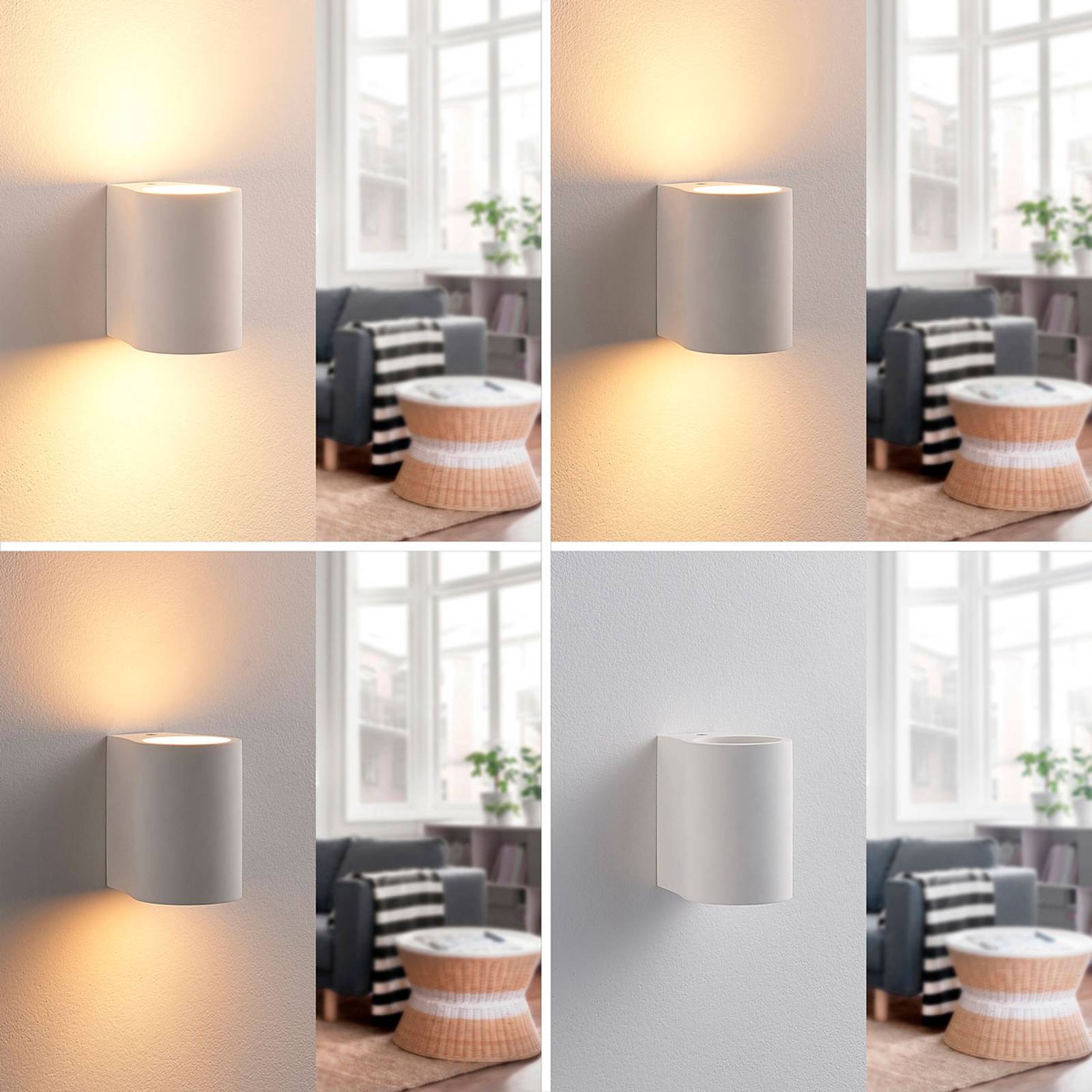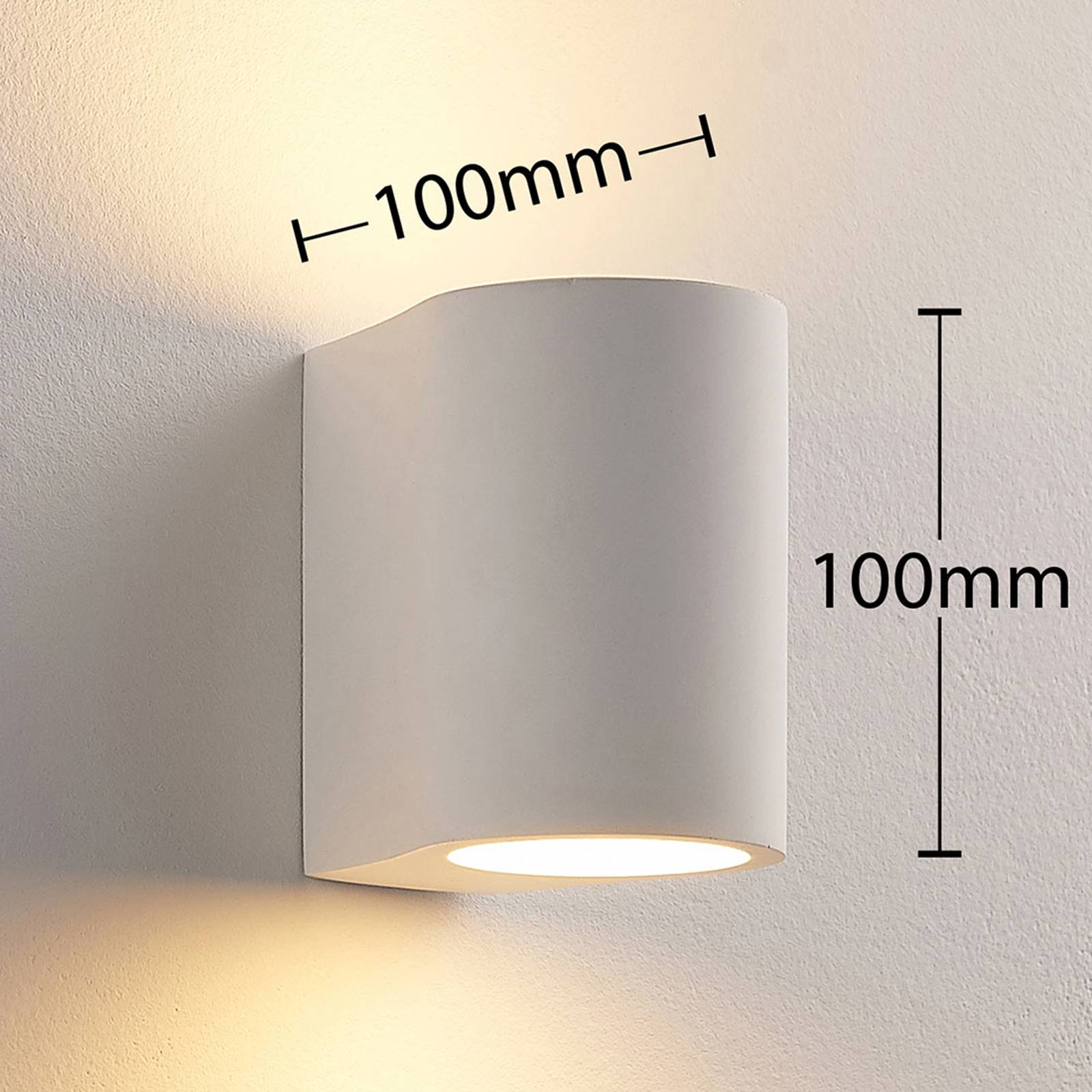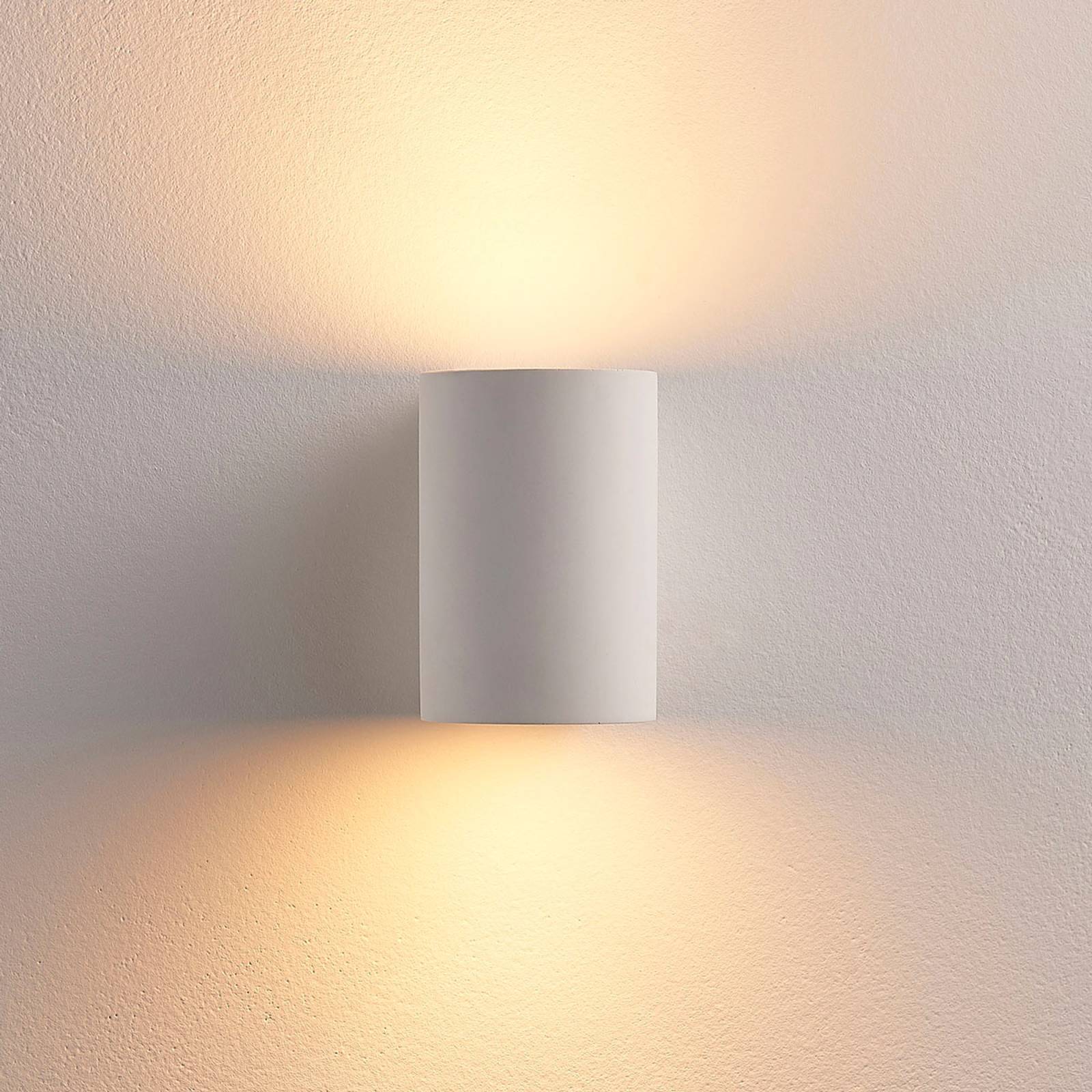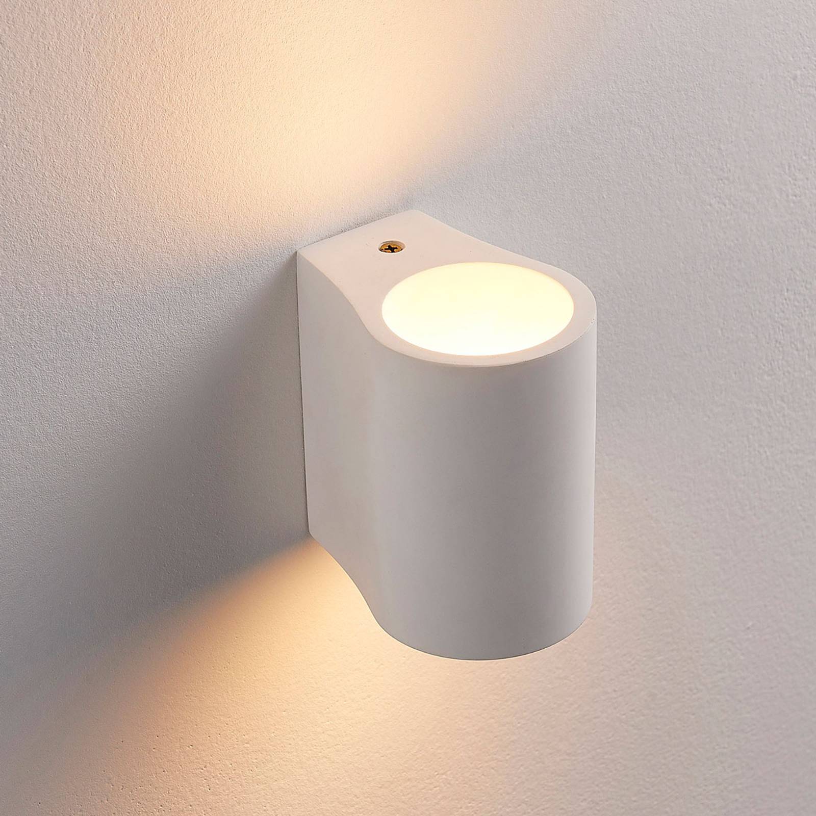 Půlkruhové nástěnné svítidlo LED Jannes se světlem směřujícím dolů a nahoru Tělo tohoto nástěnného svítidla LED je vyrobeno ze sádry, materiálu, který je v oblasti osvětlení již několik let velmi oblíbený. Přesvědčí nejen svým harmonickým vzhledem v bílé barvě, ale také možností natírat nebo lakovat povrch podle přání.