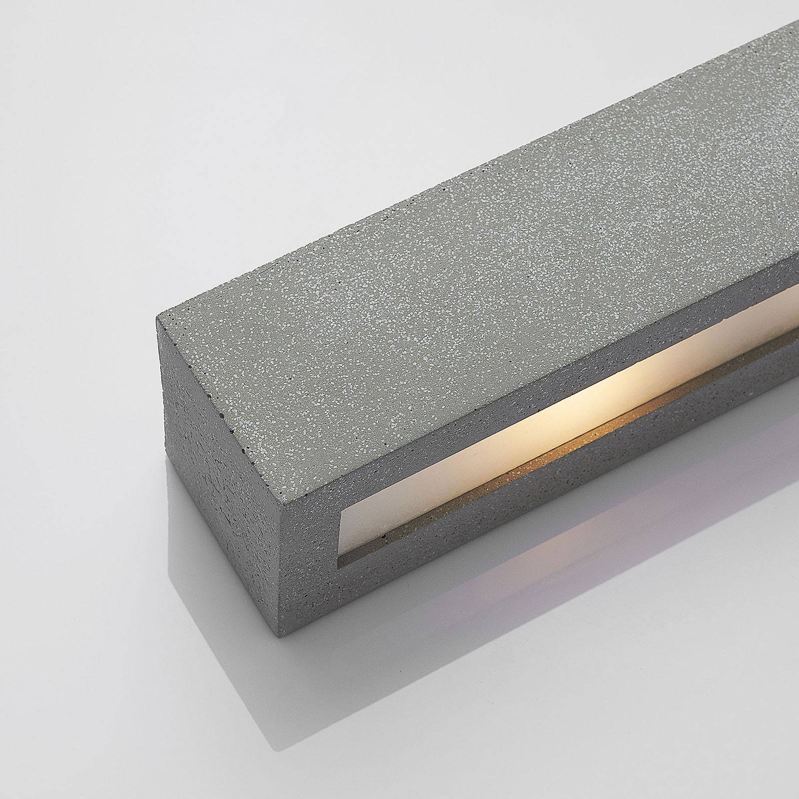 Podlouhlé betonové nástěnné svítidlo LED Nellie s dvojitým vyzařováním světla směrem nahoru a dolůNellie s betonovým povrchem se dobře hodí jako doplněk k industriálnímu stylu bydlení a je to světelný zdroj, který jinak působí zcela moderně, což je dáno jeho lineárním tvarem. Beton je vlastně známý i z jiných souvislostí, hlavně z nově budované architektury, ale už nějakou dobu se úspěšně ukazuje, že svítidla s betonovými komponenty také vykrajují opravdu dobrou figuru. Světlo směřující nahoru a dolů působí hřejivě a přívětivě.