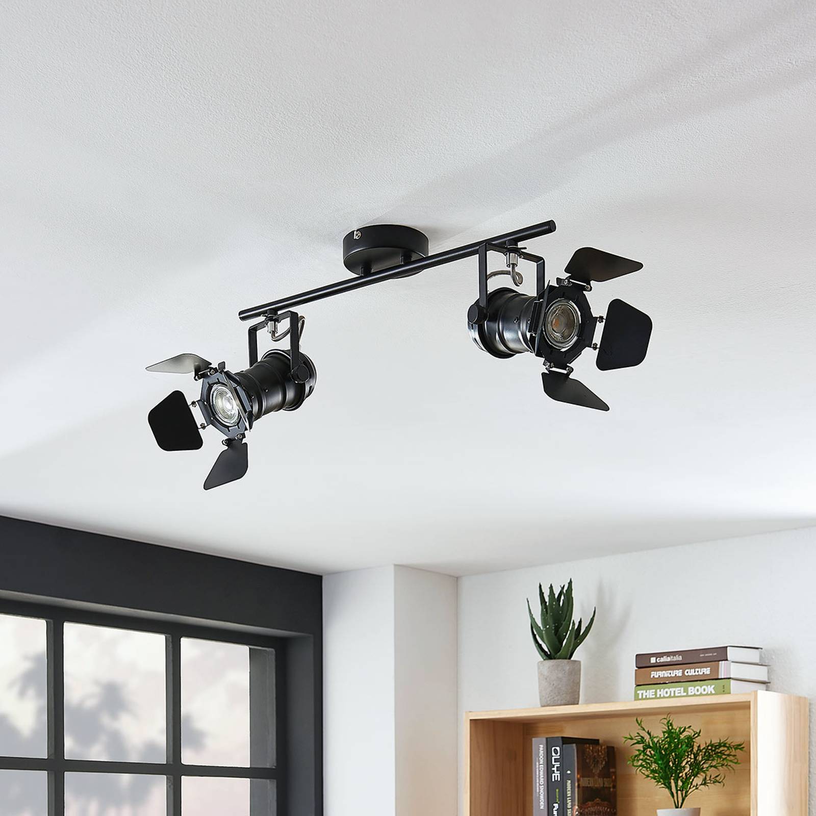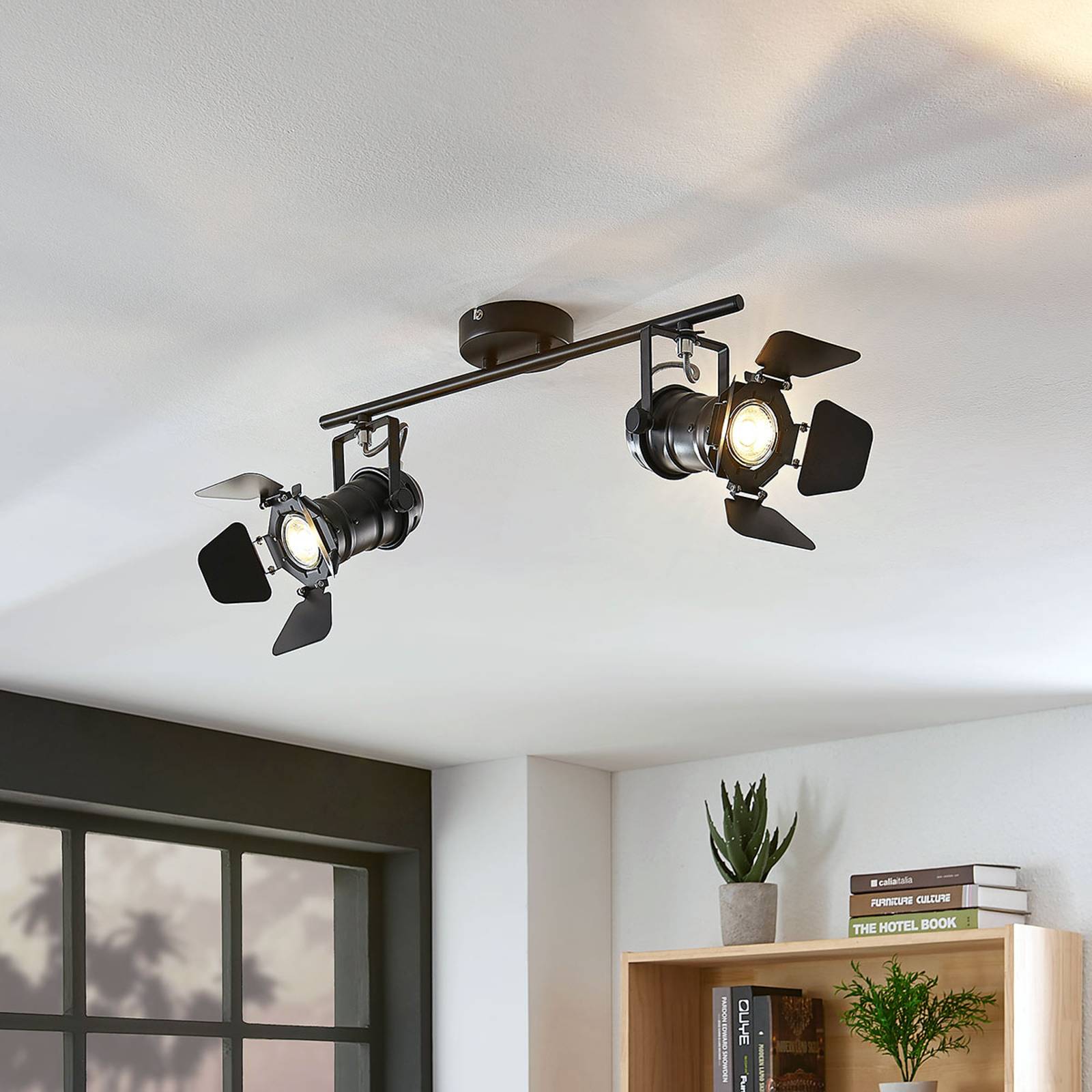 Tilen – dvouzdrojové stropní svítidlo se světly ve stylu reflektorů Moderní stropní lampa Tilen je světelný zdroj a zároveň přitahuje pozornost. Dvě světla jsou ve stylu starých reflektorů a také mají typické klapky. Mají zde však spíše dekorativní funkci, ale jsou přesto individuálně nastavitelné. Oba reflektory jsou také samostatně nastavitelné, lze je otáčet a naklápět, takže mohou nastavit kterýkoli roh místnosti. Tilen je moderní osvětlovací systém pro obývací pokoje, chodby nebo dokonce jídelny.