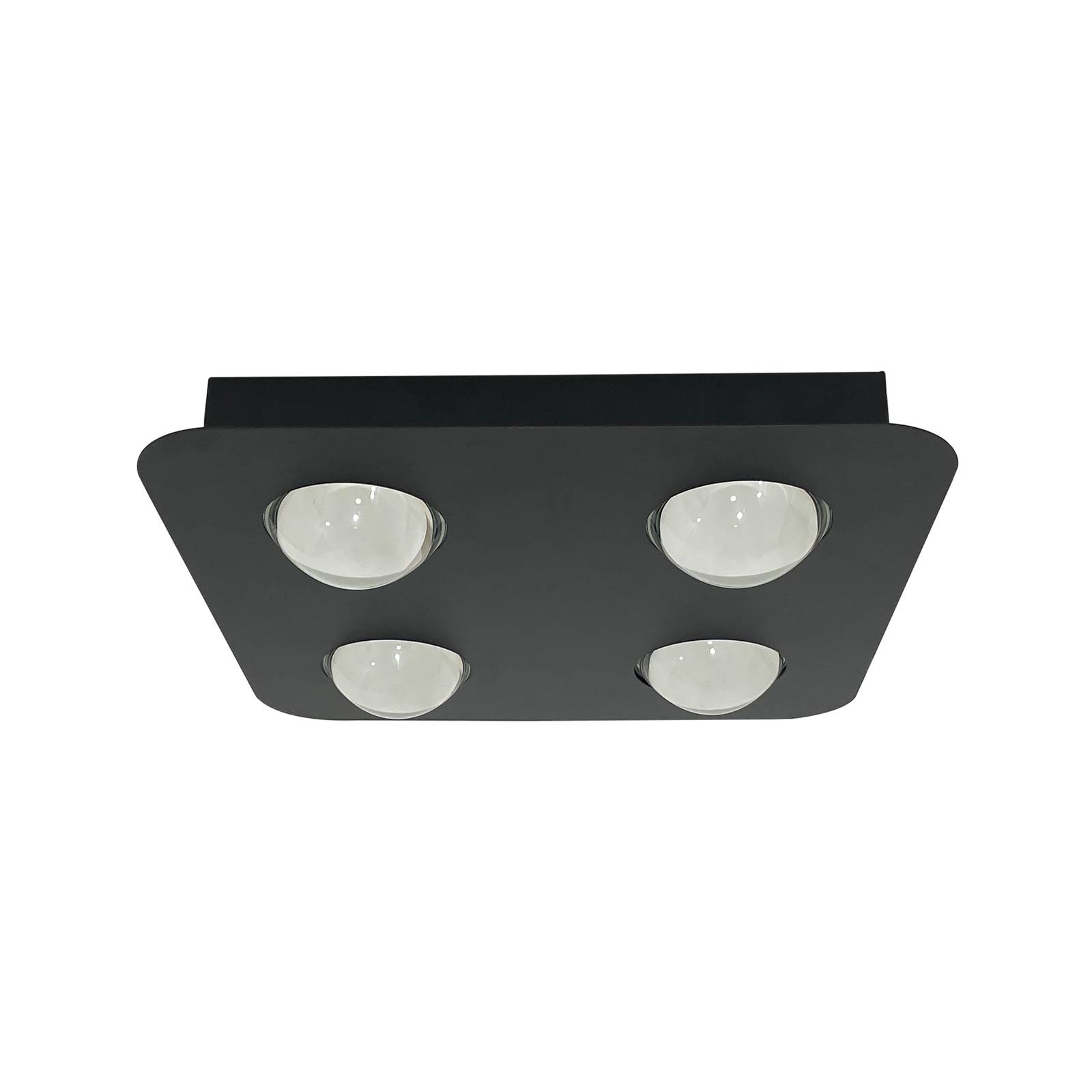 Čtyřsvětelné stropní svítidlo Jyla v černé barvě, stmívatelné Černé stropní svítidlo Jyla je vyrobeno ze železa a má čtvercový tvar. Díky svému nenápadnému designu se stropní svítidlo snadno začlení do různých prostředí. Lze jej například použít jako zdroj světla v předsíni, kuchyni, obývacím pokoji nebo jídelně. Teplé světlo navíc vytváří příjemnou atmosféru. Dodávané světelné zdroje GX53 mají zakřivené čočky, a proto vypadají jako skleněné polokoule. Světlo lze zapínat a vypínat jako obvykle pomocí nástěnného vypínače. Díky technologii třístupňového stmívání s integrovanou funkcí vypnutí jej lze také několikerým stisknutím vypínače ztlumit na tři různé úrovně jasu: 100 %, 50 % a 25 %.