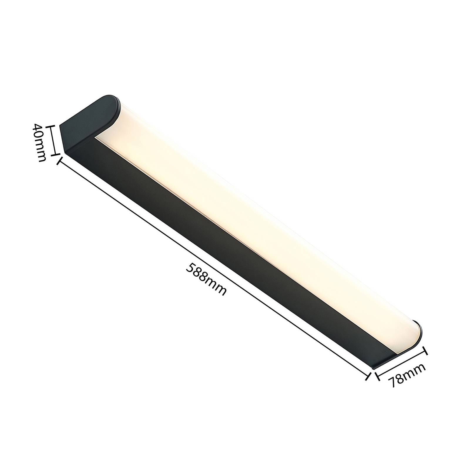Podlouhlé nástěnné koupelnové svítidlo LED Ulisan s teplou bílou barvou světla pro koupelnu Díky krytí IP44 je koupelnové nástěnné svítidlo Ulisan LED vhodné do vlhkého prostředí a dokáže vnést světlo do tmy v koupelně i ve sklepní místnosti. Jeho kovový kryt byl zpracován v černé barvě, a proto lze svítidlo skvěle začlenit do různých barevných konceptů. Teplé bílé světlo je příjemné a příjemné pro oči – ideální pro osvětlení nad zrcadlem v koupelně.