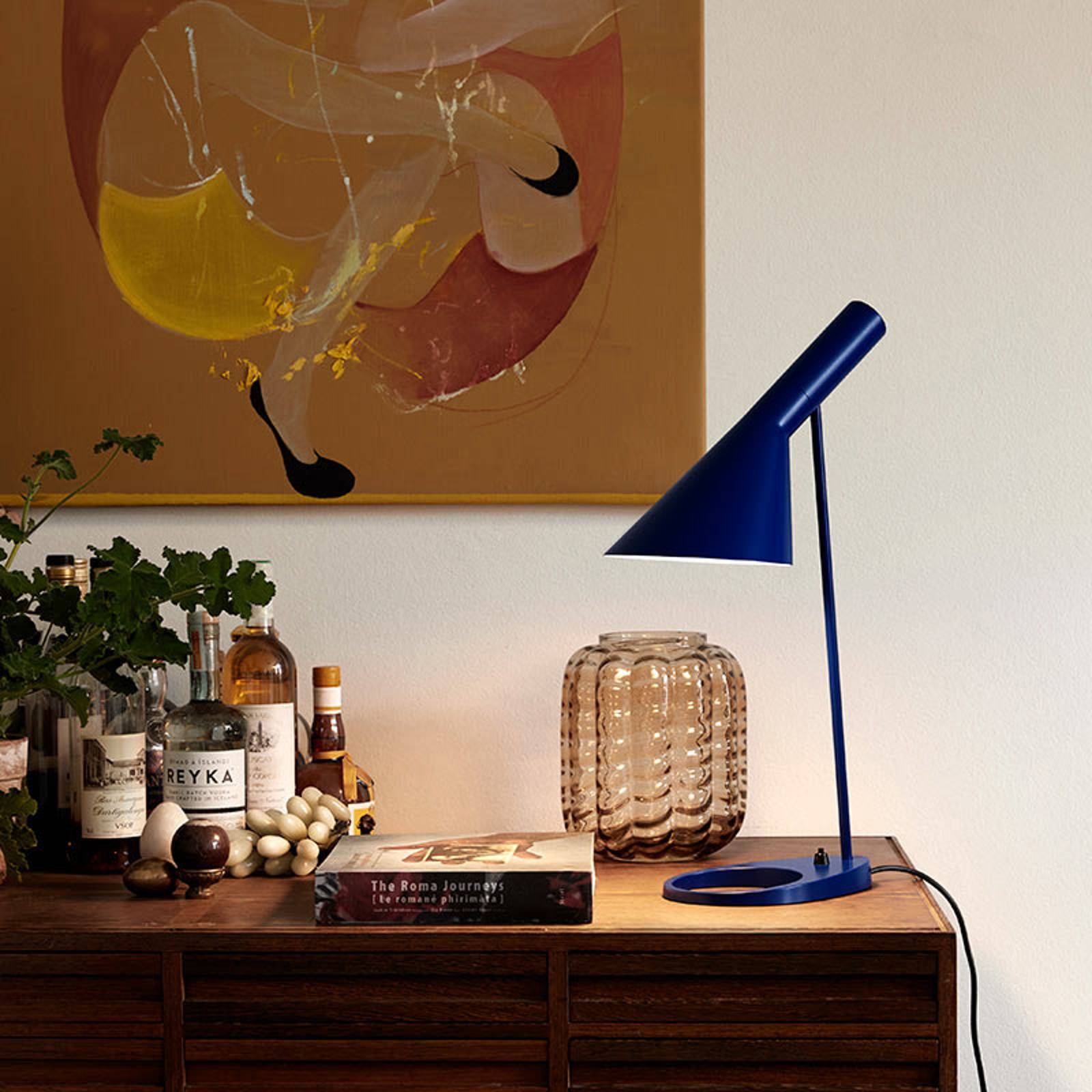 Louis Poulsen AJ – stolní lampa, tmavě modrá, Obývací pokoj / jídelna, ocel, zinkový odlitek, E27, 20W, L: 16 cm, K: 56cm